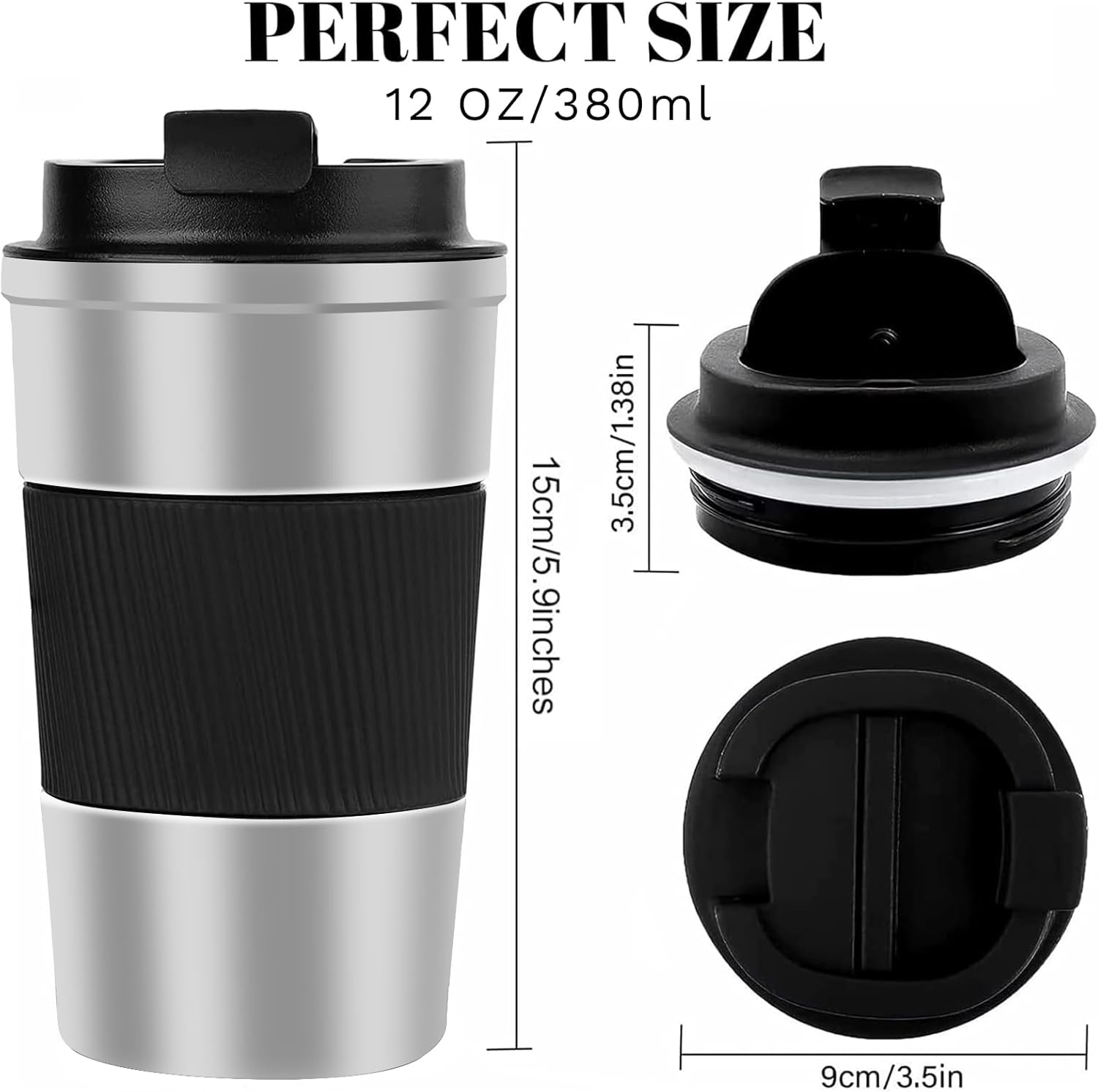 YINBAOGE Insulated Travel Coffee Mug Spill Proof Leak Proof Pobtable To Go Camping Stainless Steel Coffee Tumbler Reusable Coffee Cups with Lids Thermos for Hot and Cold Drink (Silver black, 12 OZ)