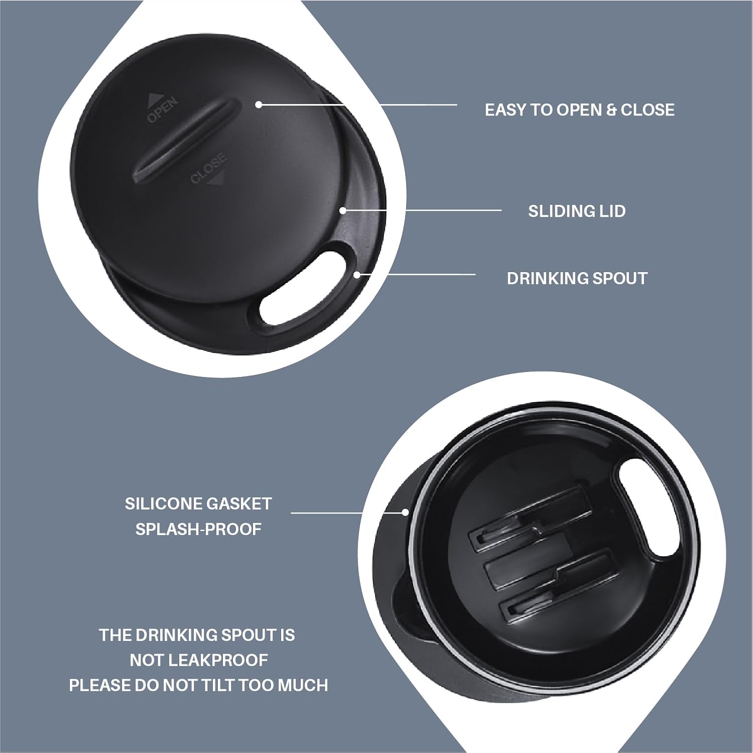 - Special Feature : Condensation Resistant, Double Wall, Sliding Lid, Spill Proof, Vacuum Insulated