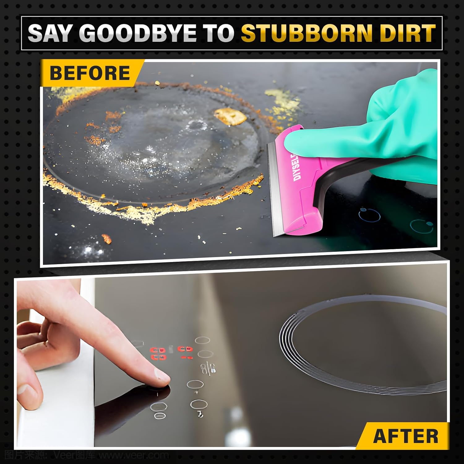 - Effortless Efficiency: Experience cleaning like never before with the ingenious design of our metal scraper. The 4-inch-wide razor blade ensures swift and thorough cleaning, covering larger areas in less time. Coupled with its ergonomic handle, cleaning becomes a breeze, saving you time and effort with every swipe.