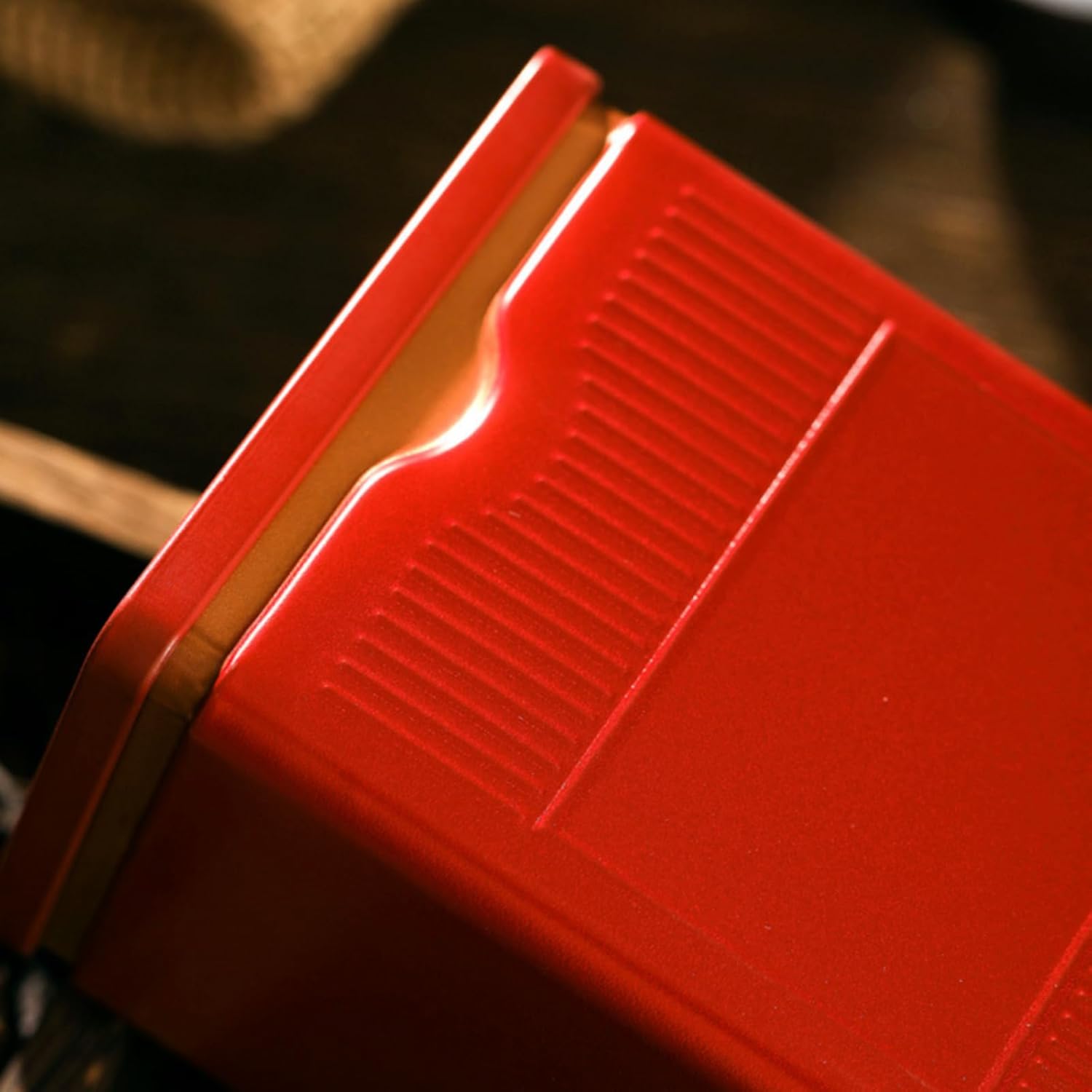 HAN SHENG Square Airtight Tea Tins - Red, Food Storage Containers for Loose Tea, Coffee, Spices (5.9"x3.4"x2.8")