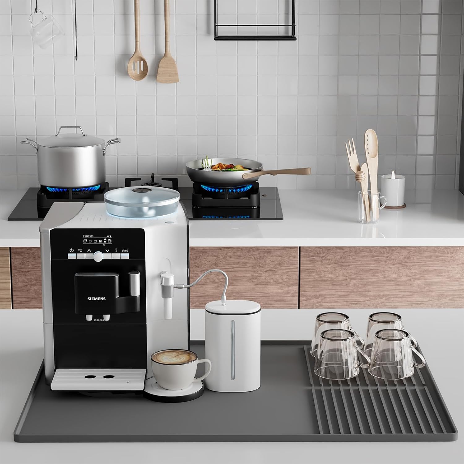 Silicone Coffee Mat with Raised Edges, 24'' x 16'' Bar Mat for Countertops, Fits Under Coffee Maker, Espresso Machine, Dish Drying Mat, Gray
