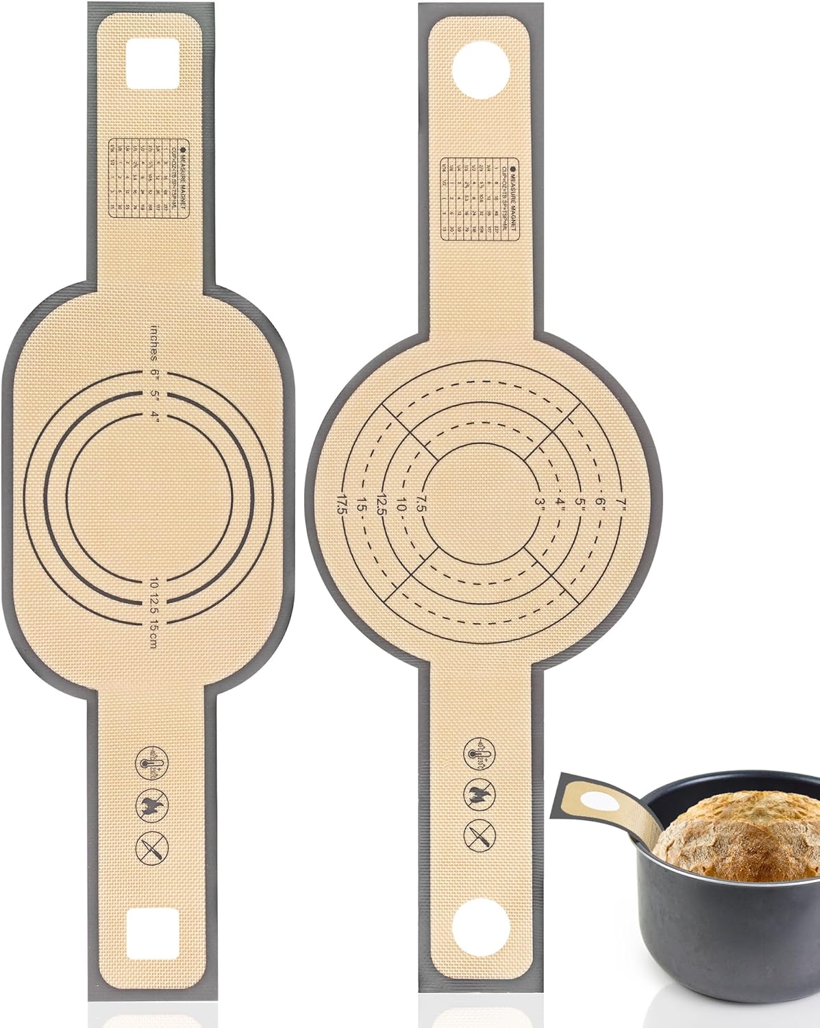 - Upgraded version:It has been improved compared with other thin and regular bread sling with holes for dutch oven,WNATN Bread Sling dutch oven silicone updated extra Longer and widen handle design for more safety transfer dough to Dutch oven pot and avoid burnt your hands when Bread in and out Dutch Oven Pot.and it has an Increase the diameter to 7inches to better wrap your sourdough bread without the risk of nudity!