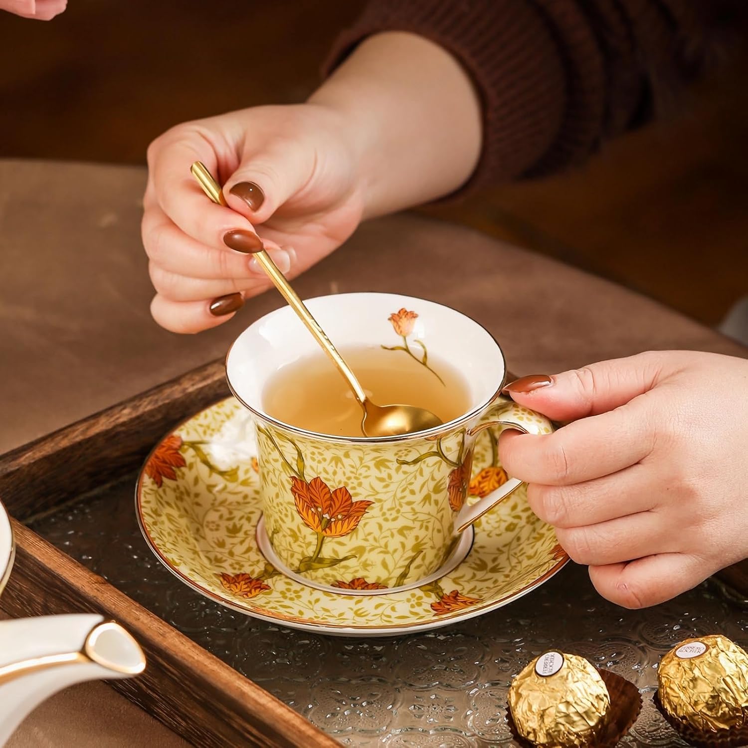 - Gift of relaxation: Beautiful gift for Christmas,mother's Day,teacher's Day, gifts for women,gifts for Adults. Surprise and delight your loved ones with our stunning tea set, featuring intricate details and a timeless design that will add a touch of sophistication to any tea party or gathering.