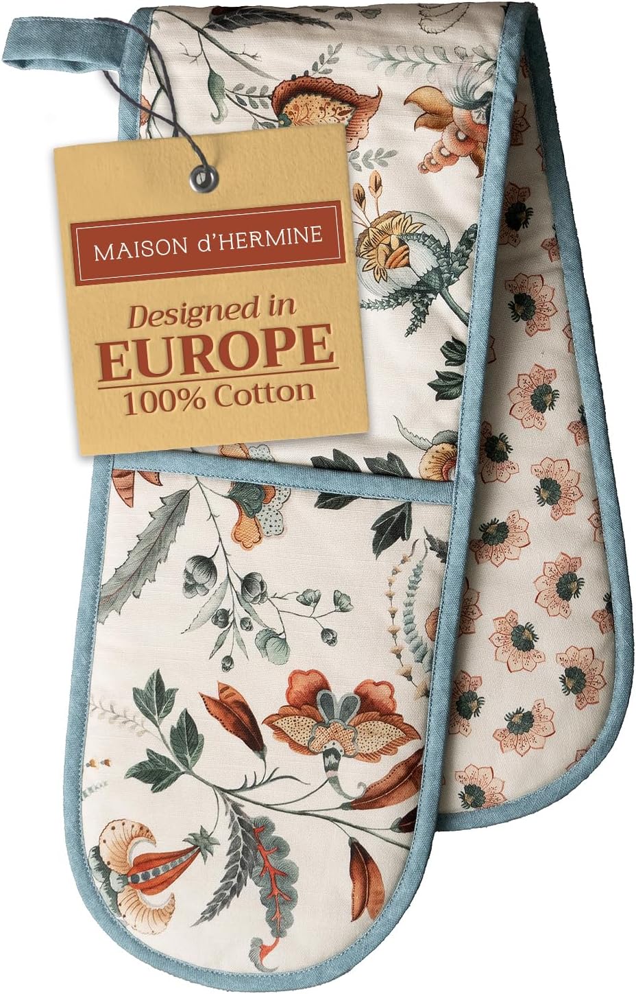 Maison d' Hermine Double Oven Mitts 100% Cotton 7"x35" Double Oven Mitt Heat Resistant BBQ Cooking Gloves with Loop, Baking, Grilling, Home, Kitchen, Handling Hot Pans (Dalida)