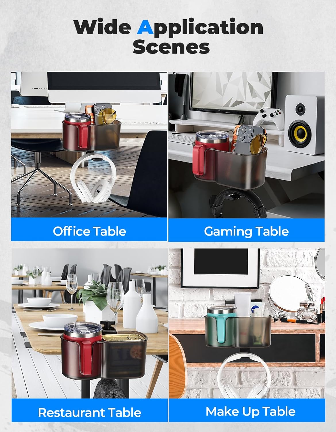 - Fits Most 18-32 oz Cups: Suitable for desks with a thickness of 0.5 to 1.5 inches, there's ample room for 18-32 oz bottles, as well as additional space to store items like pens, phones, pencils, markers, rulers, erasers, and many other desktop accessories