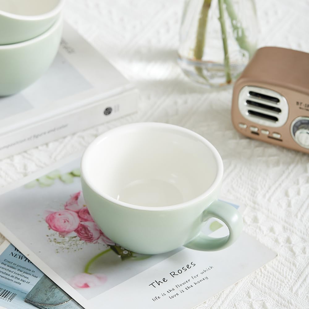 Set of 6 Matte Green 10 oz Professional Barista Ceramic Latte Art Cappuccino Cups Set (Matte Green * 6)