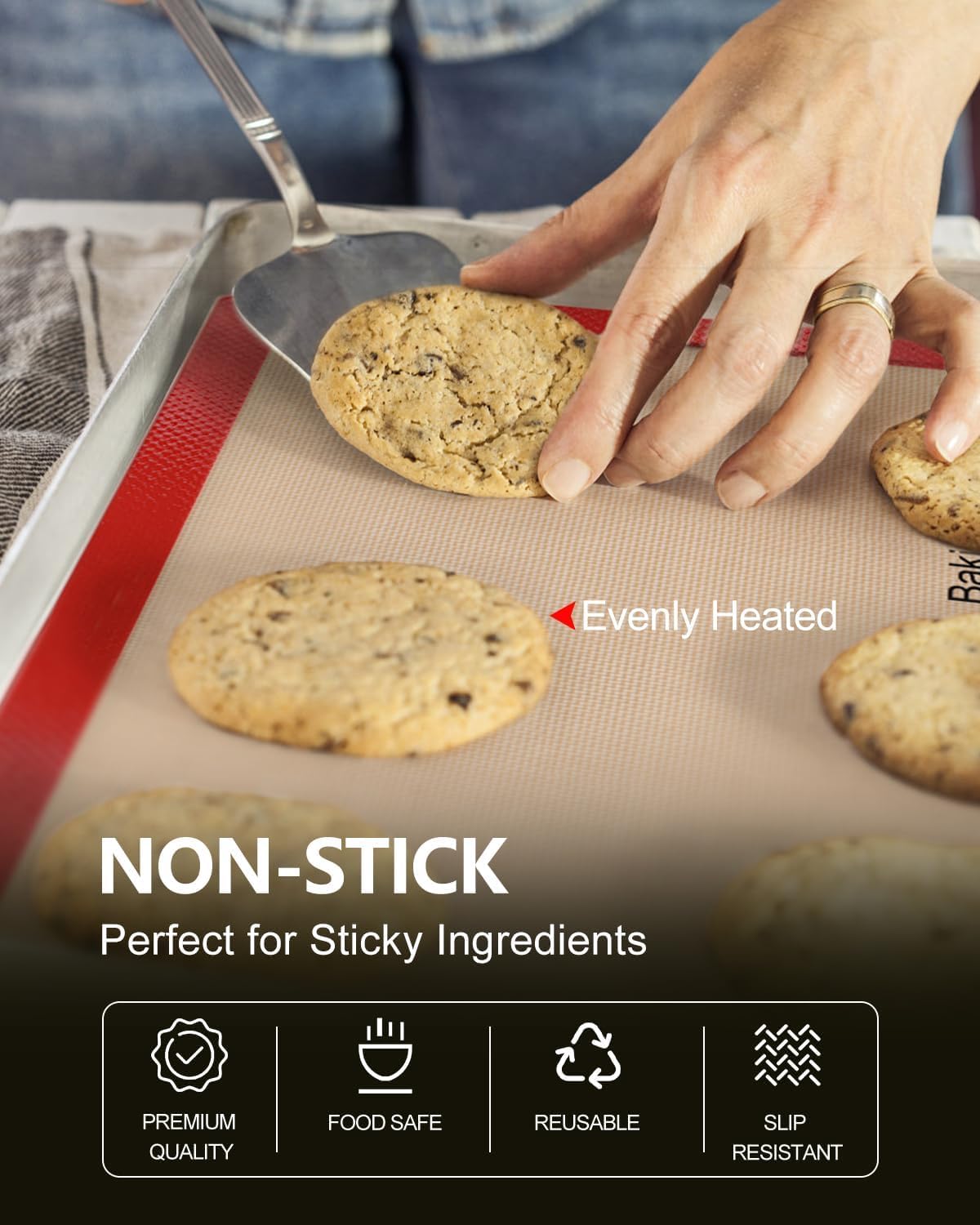 - Premium Platinum Silicone Mat: Crafted with ultra-durable, food-grade platinum silicone, BPA-free, and odorless, approx 2x denser than generic mats withstands years of baking sessions. Our silicone baking sheet is also safe in -40℉ freezer to 480℉ roast without warping or cracking