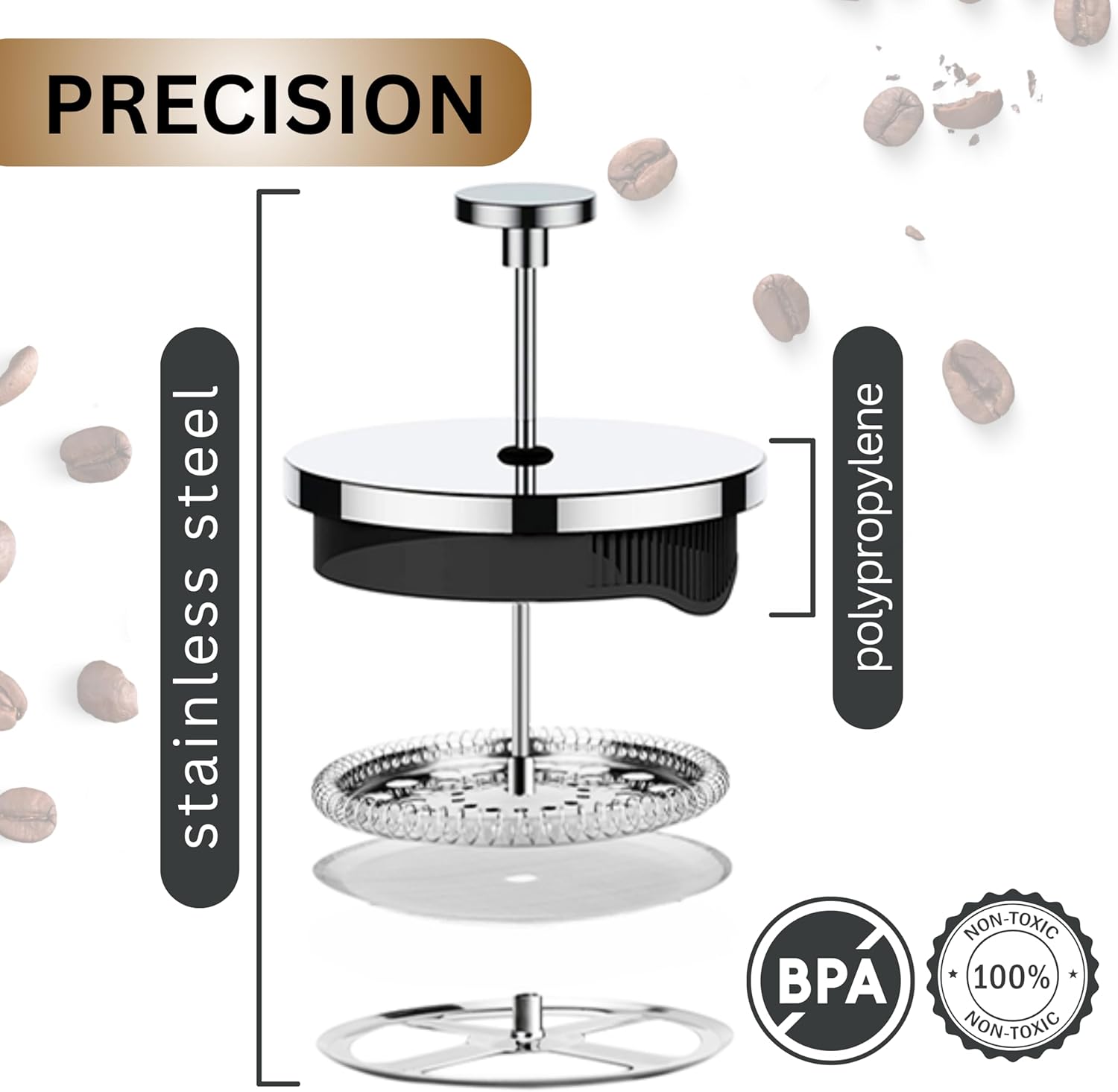 - : Material Borosilicate Glass Carafe (BPA free, non-toxic, lead-free ), Polypropylene lid and strainer (Food-Grade Plastic, BPA free, non-toxic, lead-free), Stainless Steel Filter and Plunger (BPA free, non-toxic, lead-free) Borosilicate Glass Carafe (BPA free, non-toxic, lead-free ), Polypropylene lid an… See more