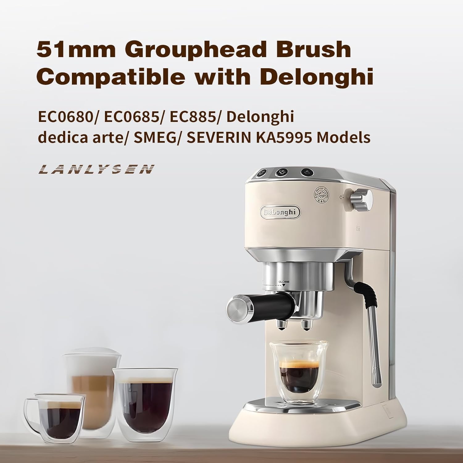 - Compatible with Multiple Models:LANLYSEN 51mm coffee cleaning brush only for Delonghi EC0680,EC0685,EC885,Delonghi dedica arte,SMEG,ECF01,SEVERIN KA5995, (Note: Not compatible with CASABREWS machine,Not compatible with 2 Ear machine)Regular use of our cleaning brush helps extend the life of your coffee maker by preventing build-up of coffee oils and residues, ensuring your machine functions optimally and your coffee tastes great