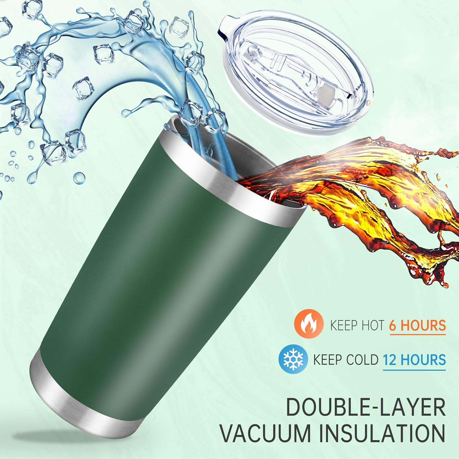 - Double Wall Vacuum Insulated Tumbler: Our stainless steel tumbler uses double-layer vacuum insulation technology to ensure the drinks in the cup keep cold or warm for a long time that extends your drinking time; It can keep water warm for 6 hours and cold for 12 hours, suitable for water, coffee, milk, cocoa, juice or more