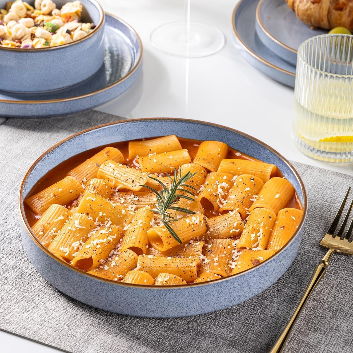 - 【STACKABLE & DISHWASHER SAFE】: made of durable stoneware, These Pasta bowls are stackable and dishwasher, microwave, freezer safe! You also can wash them with dish soap and hot water easily, and humanized design make it take up a little space in your cabinet.
