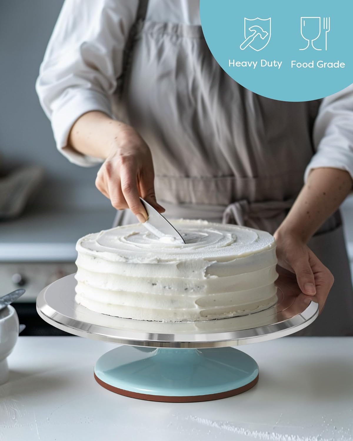 - Heavy-duty Turntable: Crafted from durable ALUMINUM ALLOY renowned for its strength, this cake decorating turntable ensures longevity and reliability, capable of withstanding frequent use. Additionally, it offers excellent stability on countertops, minimizing the risk of tipping or wobbling during use.