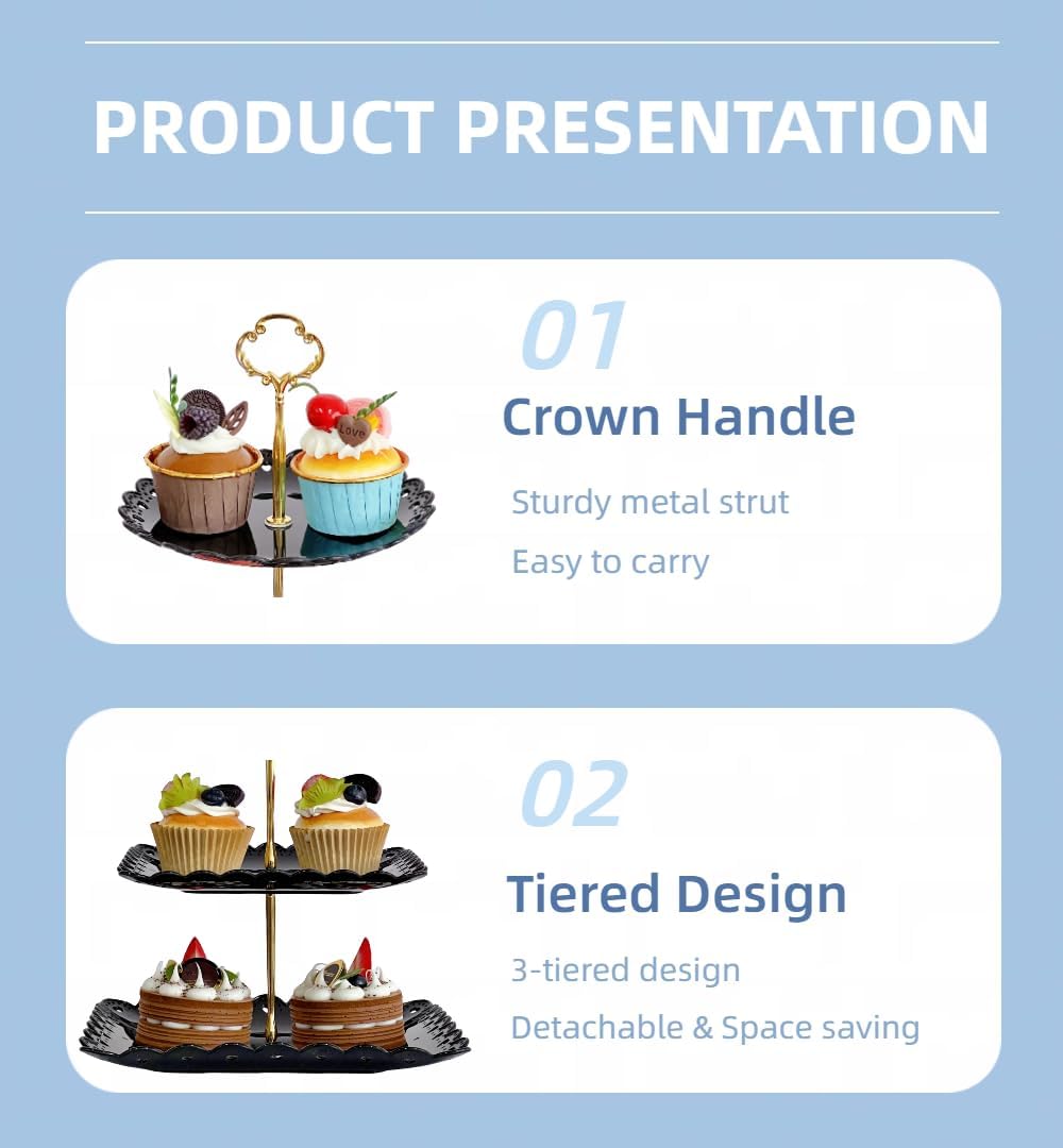 - Material: The 3 tiered serving stand is made of pp plastic, safe,durable and reusable. Easy to clean and easy to move. Compare with other plastic stand, cupcake stand is more thicker and sturdy