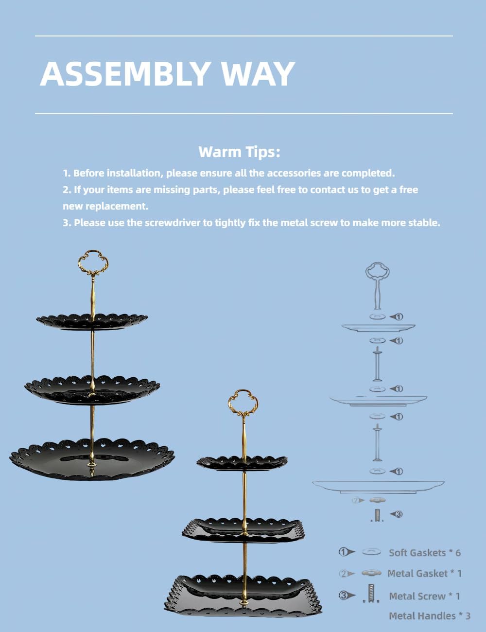 - Exquisite workmanship: Black plastic relief design cake stand with a delicate sturdy gold stents, can show your carefully prepared dessert snacks and cakes, also an attractive ornament on the table