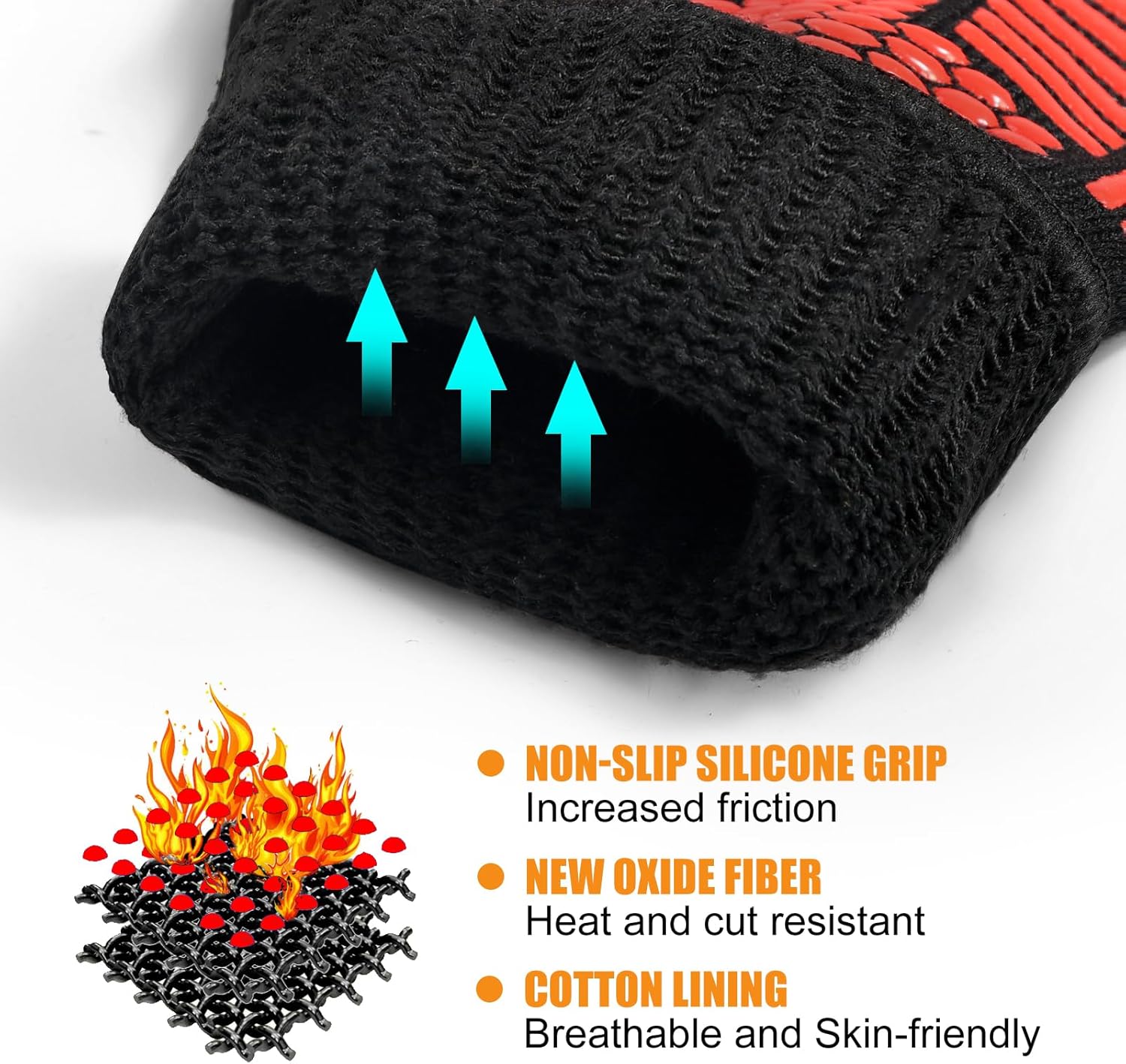 - 【Extreme Heat Resistance】Our barbecue gloves & oven mitts, are designed to withstand temperatures up to 572°F(Test max temperature tolerance), providing perfect protection for your hands from high temperatures whether you're grilling, baking, or cooking.