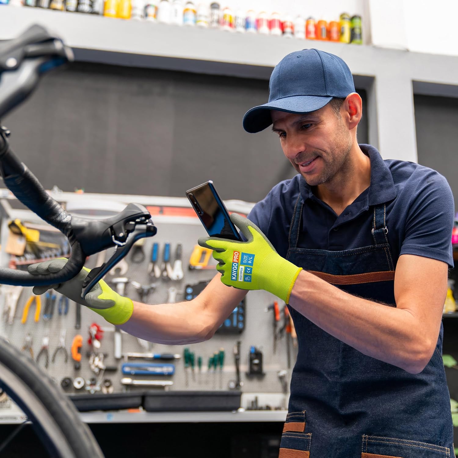 KAYGO Safety Work Gloves PU Coated for Men and Women- KG11P,12 Pairs,Seamless Knit Glove with Two Fingers Touchscreen,Ideal for General Duty Work (Green,M)