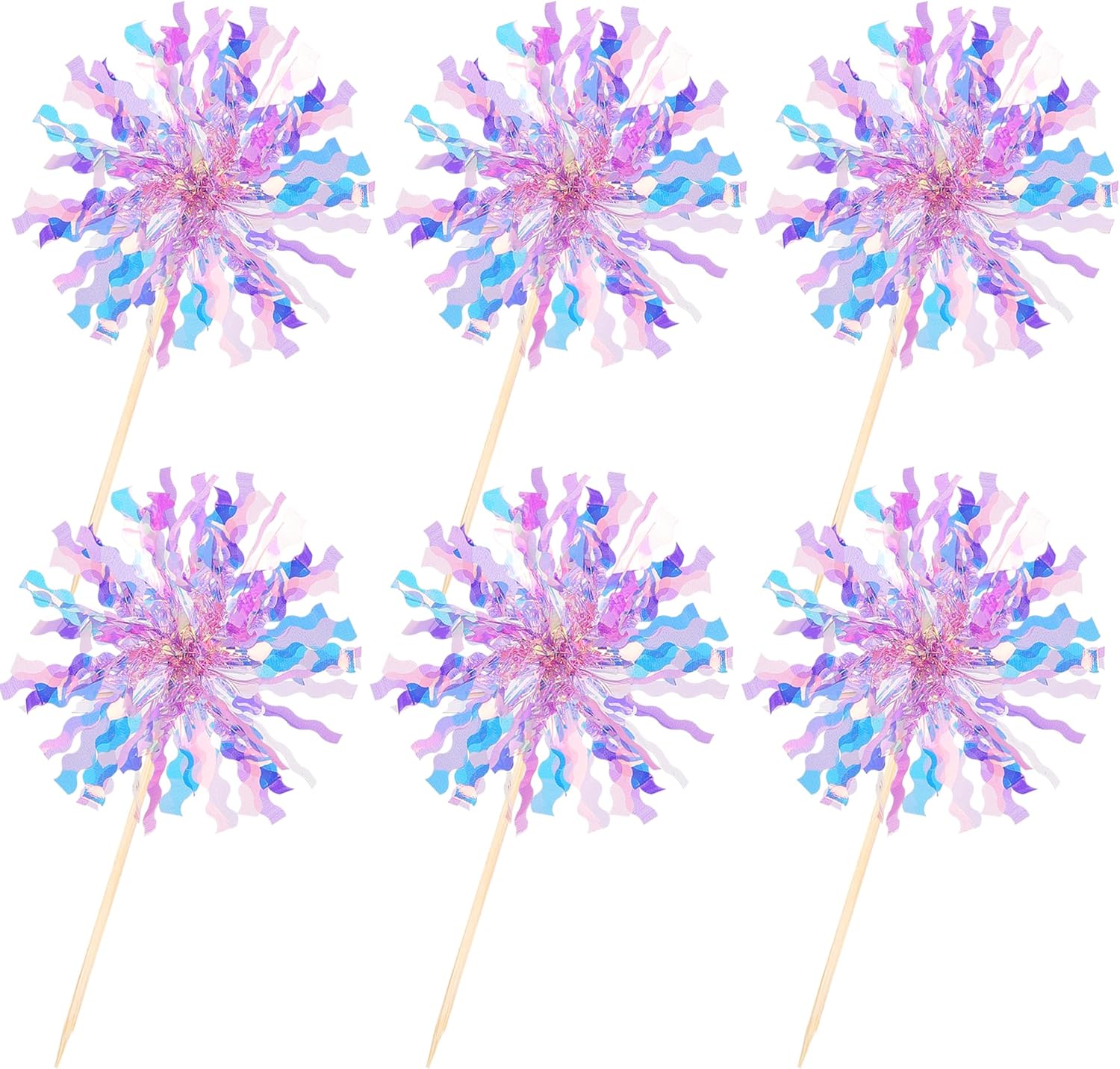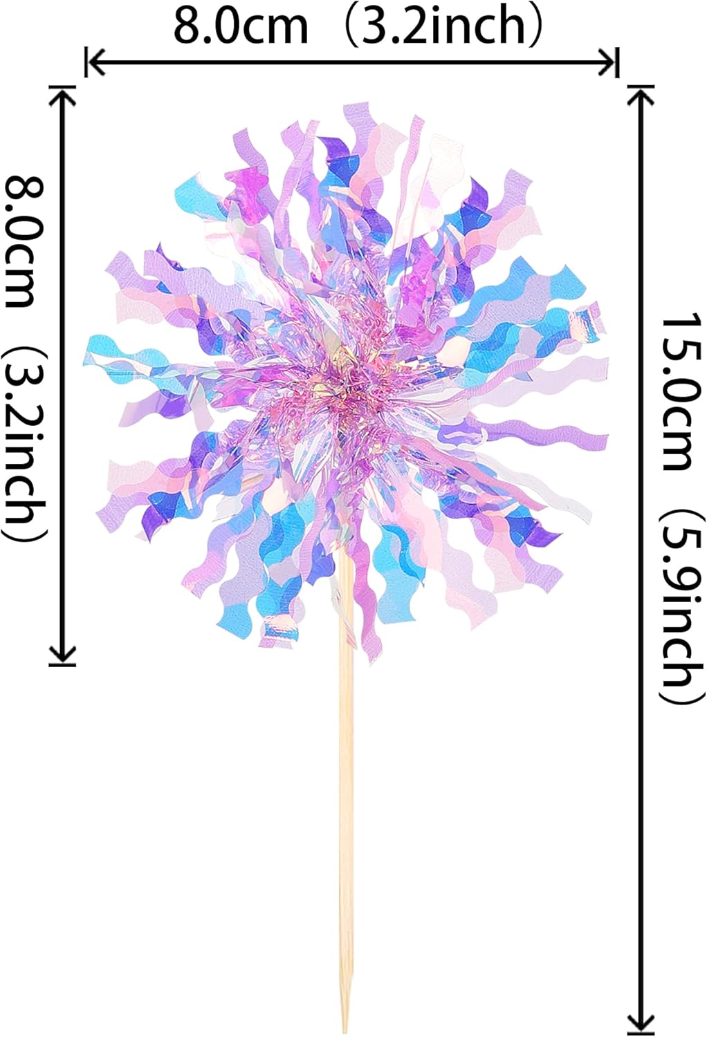 30 PCS Foil Firework Cupcake Toppers Sparkle Tinsel Cupcake Picks Happy Birthday Cake Toppers Drink Stirrers Cocktail Food Fruit Toothpicks for Baby Shower Birthday Party Decorations Supplies Purple