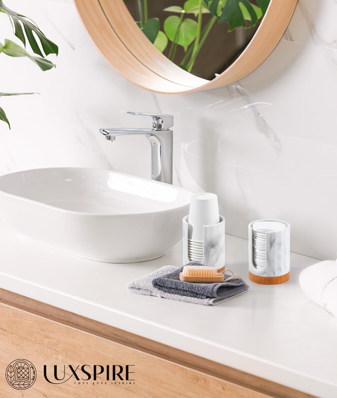 Luxspire Dixie Cup Dispenser, 5-7oz Bathroom Cup Dispenser, Marble Resin Dixie Cup Holder, Disposable Bathroom Paper Cup Holder, Cotton Pad Holder, Guest Bathroom Essentials, Gravel White, 1 Pack