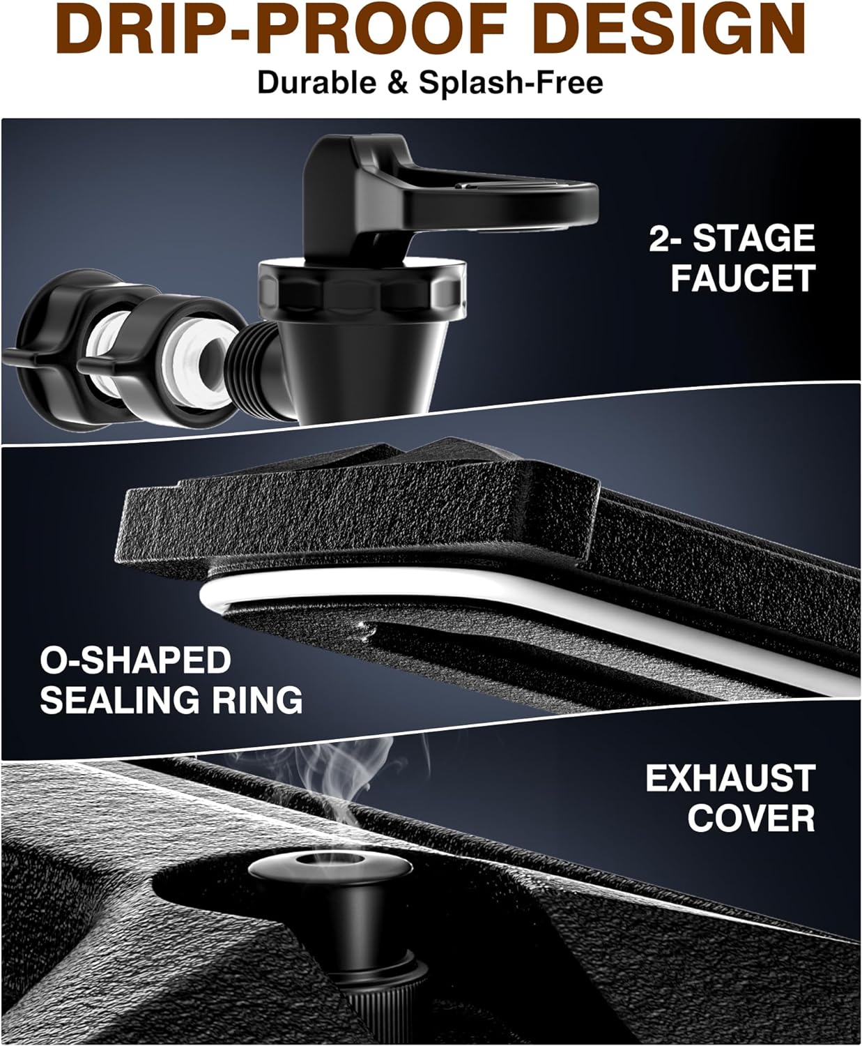 - DRIP-PROOF AND LEAK-PROOF DESIGN: Experience worry-free beverage retrieval with our hot drink dispenser professionally designed drip-proof and leak-proof features. From the double-layered faucet and O-ring sealed strip to the intelligent exhaust cover, your drinks are guaranteed not to leak or splash, making retrieval effortless and stress-free