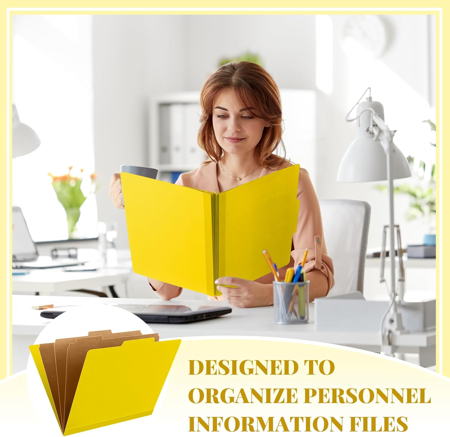24 Pcs Classification Folders Letter Size, Back to School Supply for Teacher, Student, 3 Dividers Pressboard File Folder Bulk with 2 Fasteners, 3.5 Inch Expanding File Organizer (Yellow)