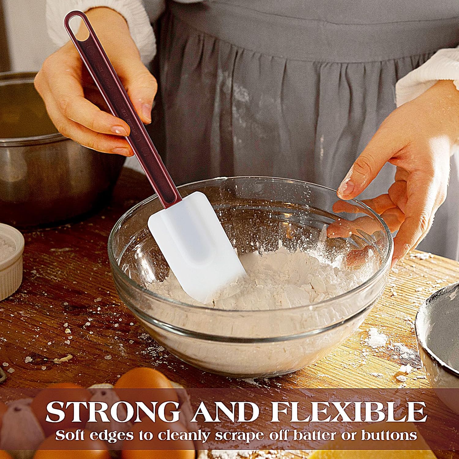 - Firm and Flexible: the high heat spatula can provide strength for easy scraping and softness to fit the sides of cookware; It is firm enough to mix hard dough, yet flexible enough to fit the curve of a bowl, and can also reach into nooks to handle details