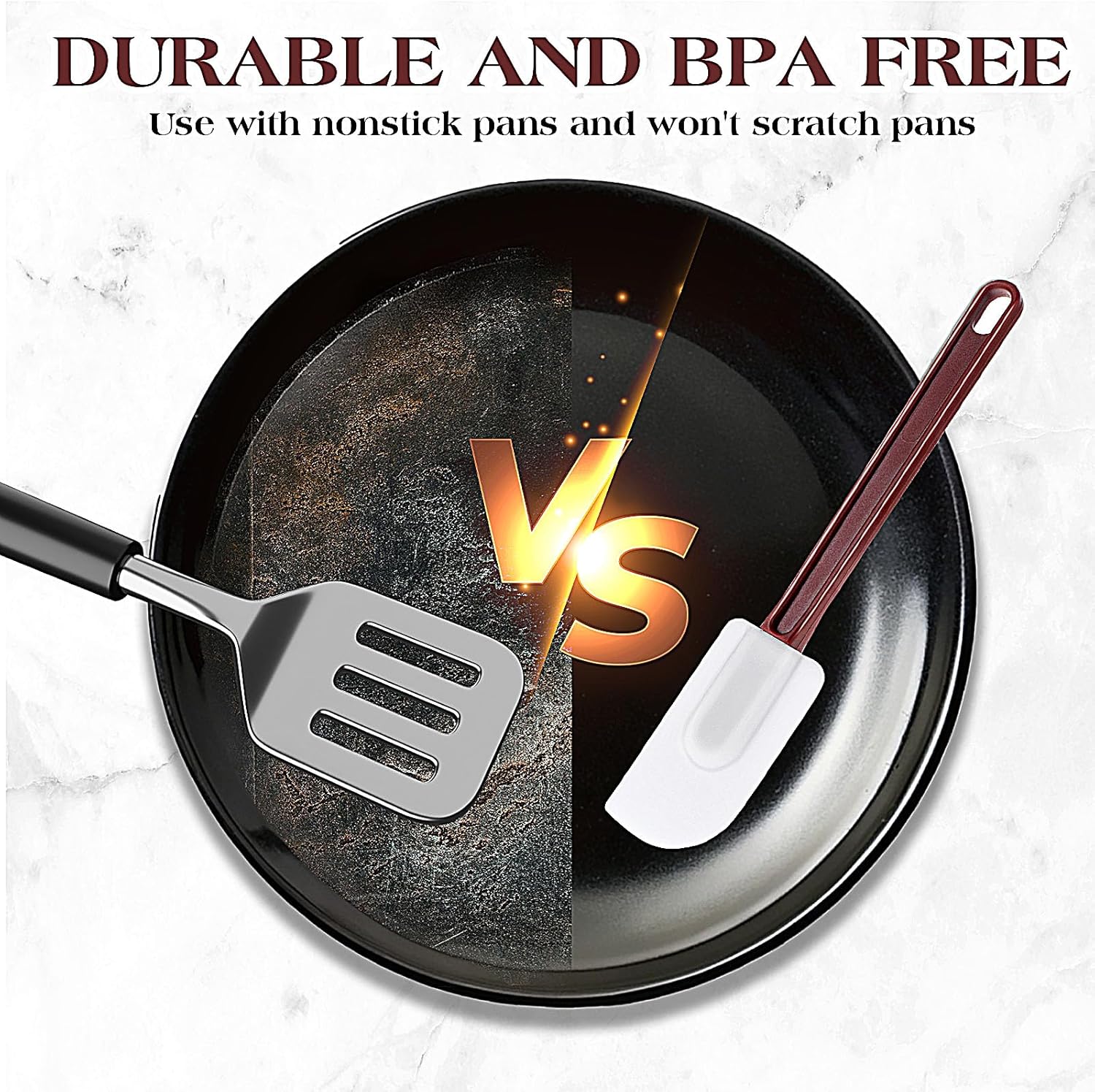 - Convenient to Clean: our spatulas for nonstick cookware is anti rust and erosion resistant, and just a quick wipe with a damp sponge cleans greasy blades, so no worry about food getting stuck on the surface; It does not easily leave odor residue or flake after cleaning