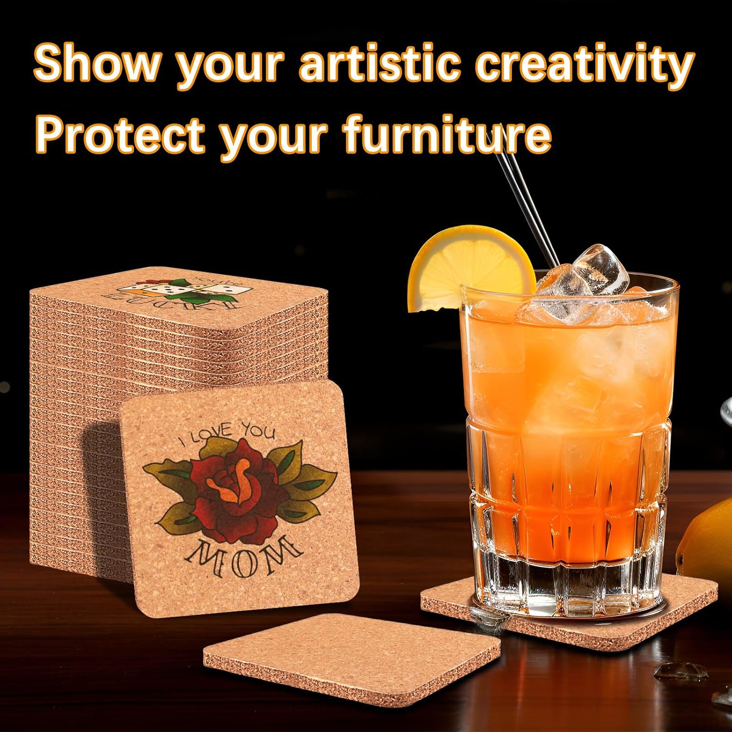 50 PCS Cork Coasters Bulk,Blank Square Cork Coasters DIY Crafts, Non-Slip Heat-Resistant Reusable Coffee Coaster, Suitable for Home Desktop Decoration