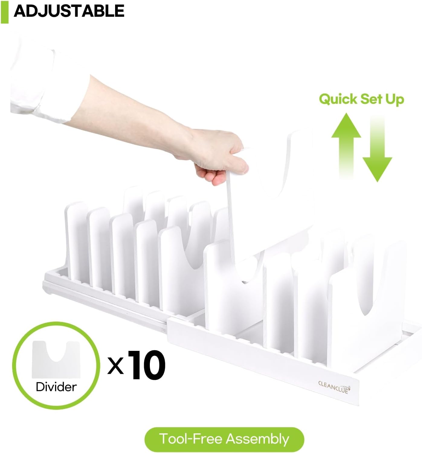 - Efficient Lid Storage - Featuring deep U-shaped dividers, this organizer provides an efficient solution for storing pots and lids with knobs, keeping them easily accessible and neatly organized