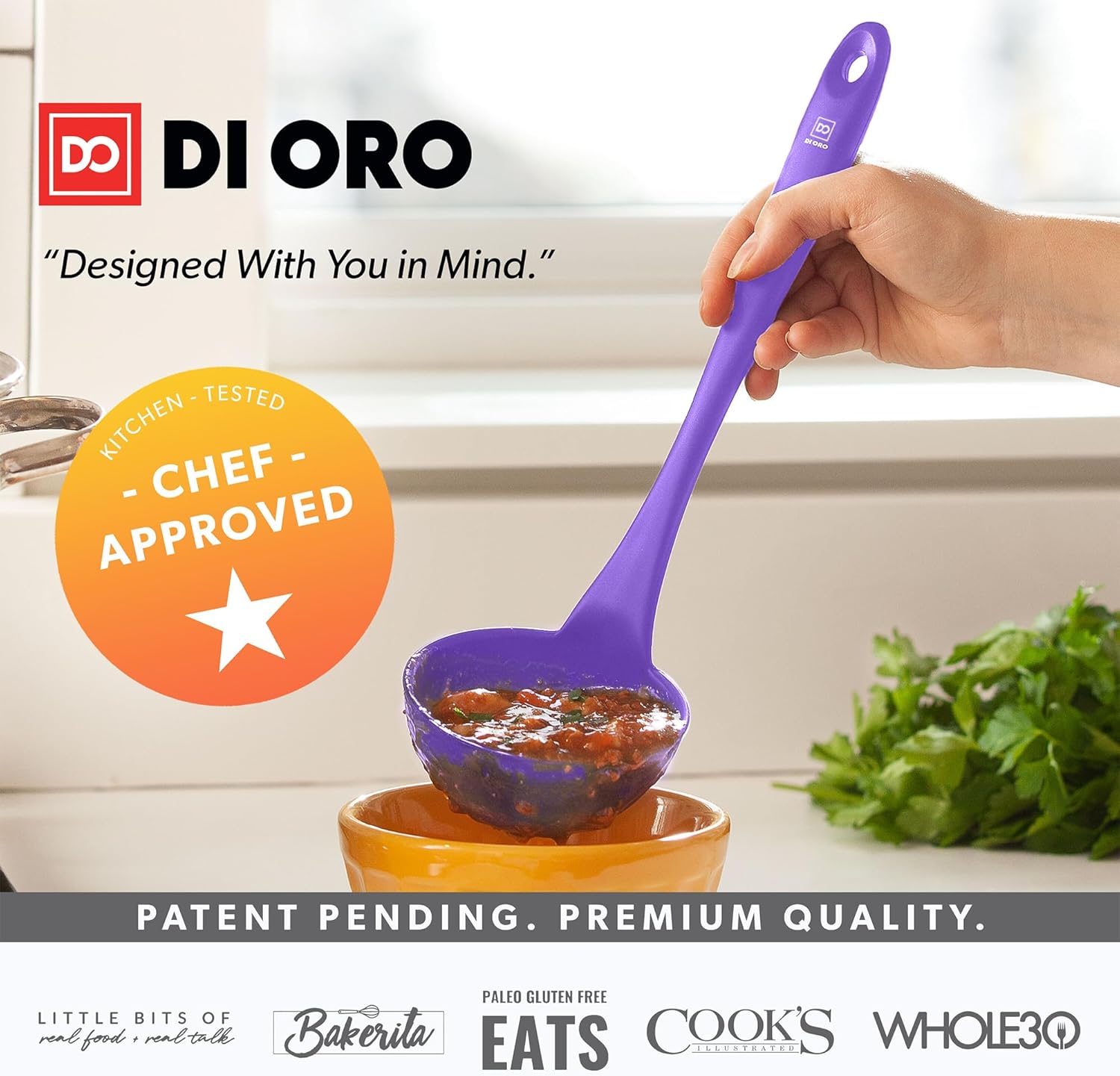 DI ORO Silicone Ladle – Soup Ladle for Cooking & Serving Heat-Resistant - Large Kitchen Ladle Nonstick Cookware Safe - Soup Serving Spoon with Wide Bowl - Silicone Utensil Dishwasher Safe (Lavender)