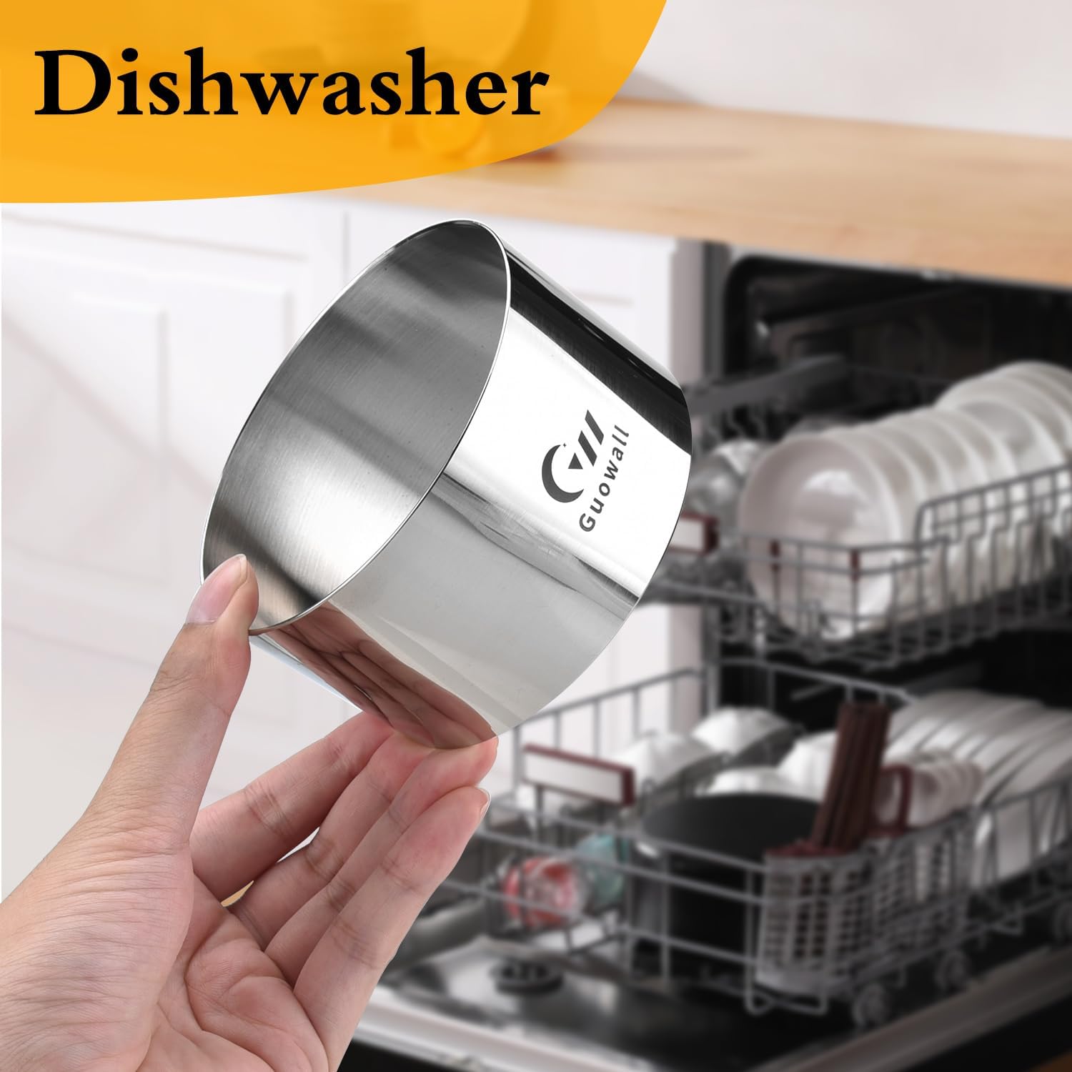 Guowall 4 pack Seamless Mousse Cake Ring set Stainless Steel 4 inch Round Food Mold Dessert Cutter for Baking (Includes 1 Lifter, 1 Pusher and 4 Rings)