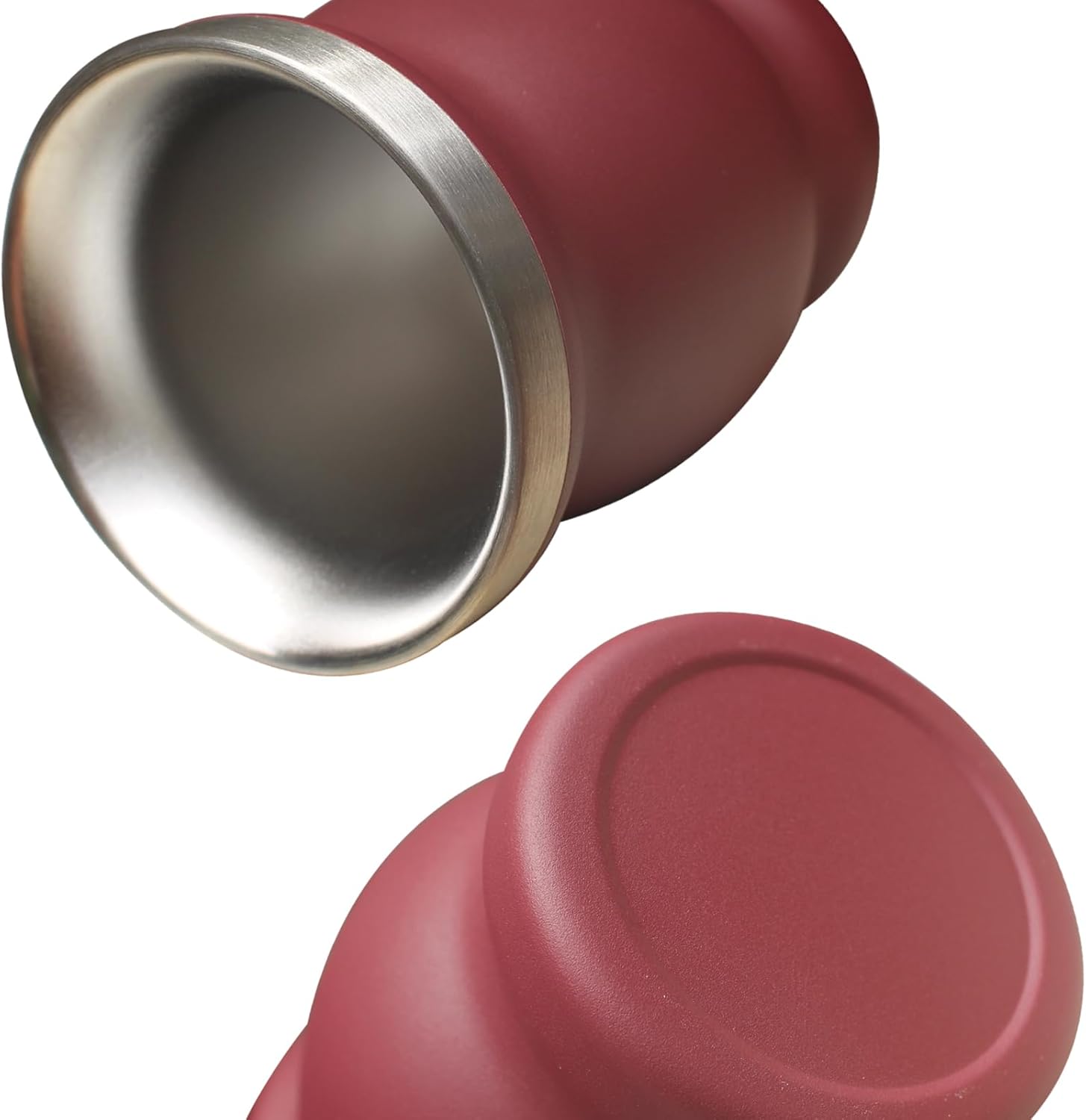 Beruth Bombilla Yerba Mate Gourd, 8oz Stainless Steel Tea Cup Set with a Multifunctional Lid, Two Straws and Cleaning Brushes, Double Walled Coffee Mug Heat Insulation Anti Scalding (Burgundy)