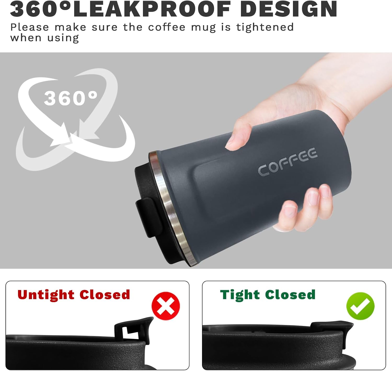 - Leakproof and Spill-proof: The stainless steel coffee mug come with a screw-on sealed lid that ensures your drink won't spill if it's knocked over or stored in a bag. The lid has a tight seal with a sealing ring to prevent leaks and spills, and it is easy to screw on and off. The drink hole on the top makes sipping easy and convenient.