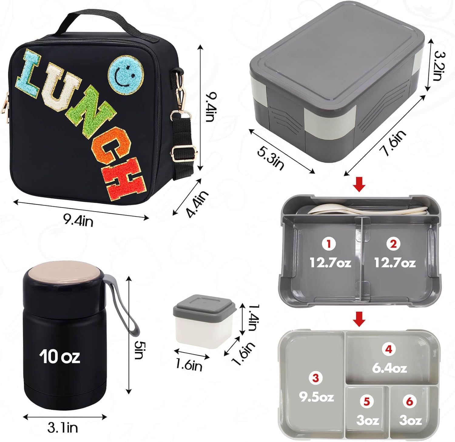- 🖤 Whether you use it yourself or give it as a gift to friends and family, our lunch bag set makes a practical and thoughtful gift. Whether you are at work, school or traveling, it will be your ideal lunch container, allowing you to enjoy delicious meals anytime, anywhere.