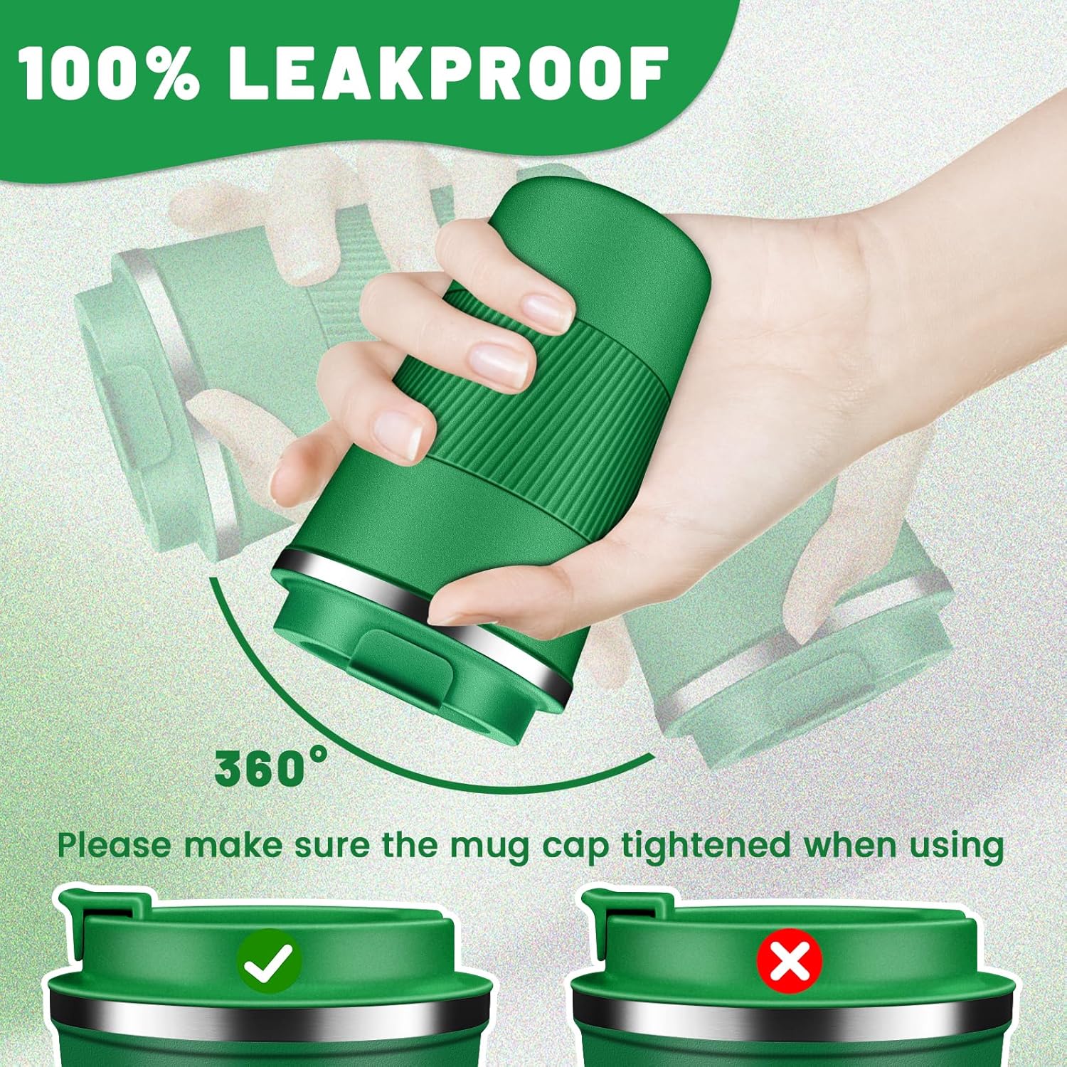 - Easy Clean & Comfort Grip: The large-opening design make insulated coffee tumbler mug easy to clean, the travel coffee mug comes with an eco-friendly one-hand flip-top snap, spiral silicone sleeve for easyily carry out, makes drinking with one hand comfortable and secure, sealing silicone strip and a screw lid design to prevent spills.
