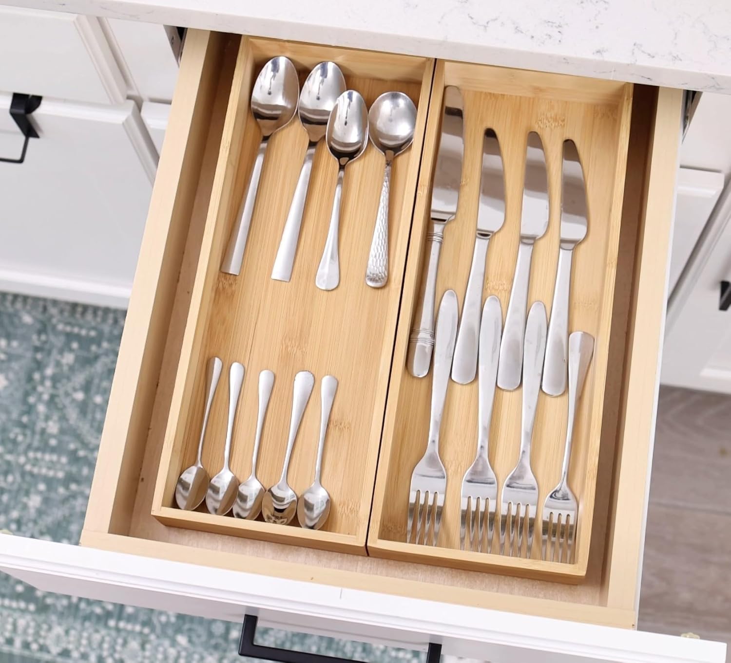 - From CHAOS to ORDER: Do you want something that looks nice and gives versatility for your kitchen/bathroom/office items in drawers? The Fabsome bamboo drawer organizer is the answer. It helps you clean up your junk drawers and put everything in order. There is a place for everything & everything is in its place, making your life a little less stressful.
