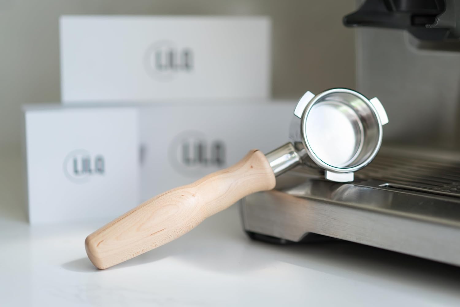 LILQ 54mm Spouted Portafilter Compatible with Breville Barista Express, Barista Pro, Bambino, and More – 18-20g basket included (Maple, Double Spouts)