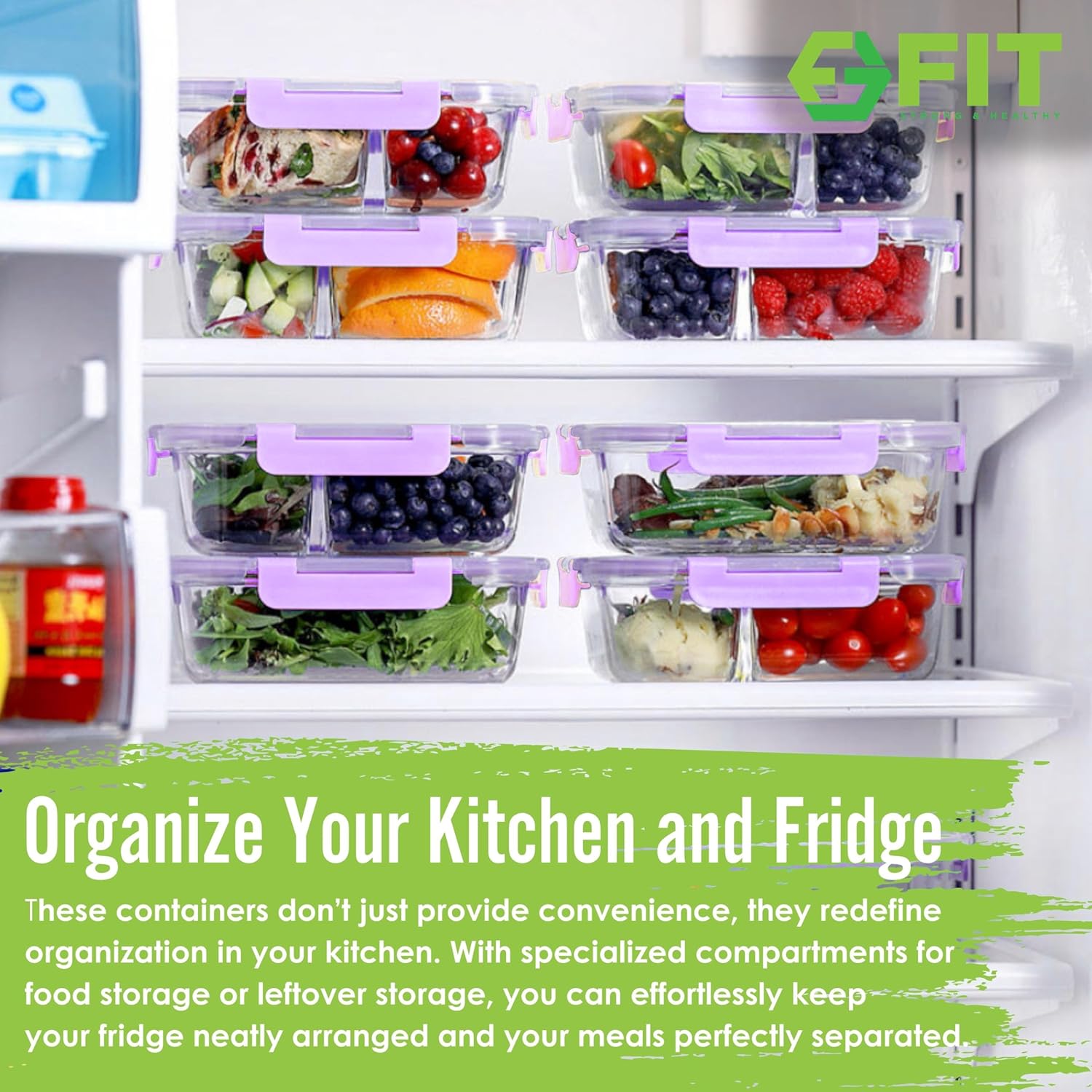- Your all-in-one Glass Food Container Set: Embrace meal preparation & organization with this 4-pack variety set; it includes two (2) of our 2-compartment and two (2) of our 3-compartment glass meal prep containers for food storage with airtight lids; portion management has never been this convenient; each container holds up to 32 oz; offering controlled servings for your nutritional planning needs