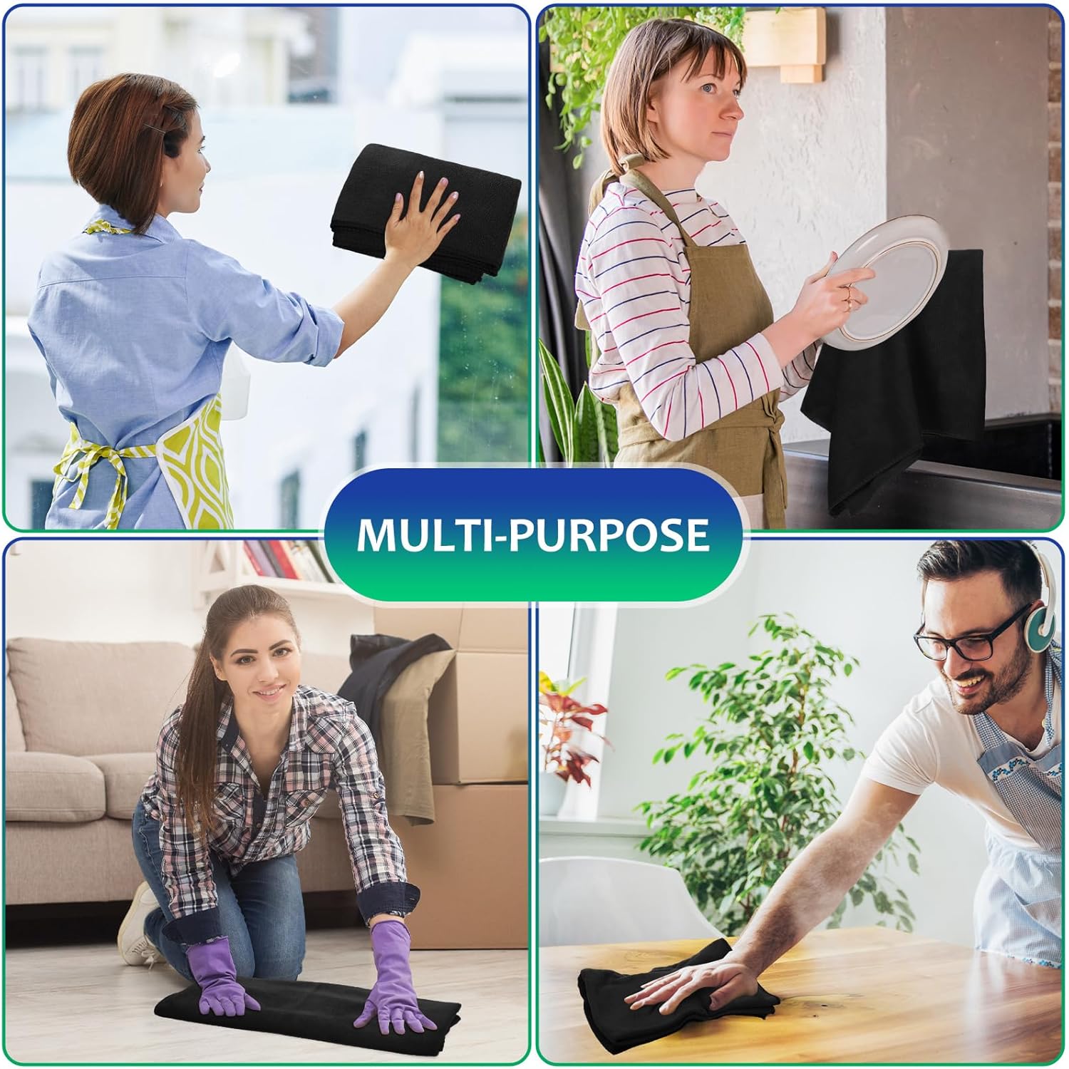 Newwiee 6 Pcs Extra Large Microfiber Cleaning Cloth 30" x 20" Washable Reusable Microfiber Towel Streak Free Lint Free Cloth for Cleaning Home Glass Office Window Bathrooms (Black)