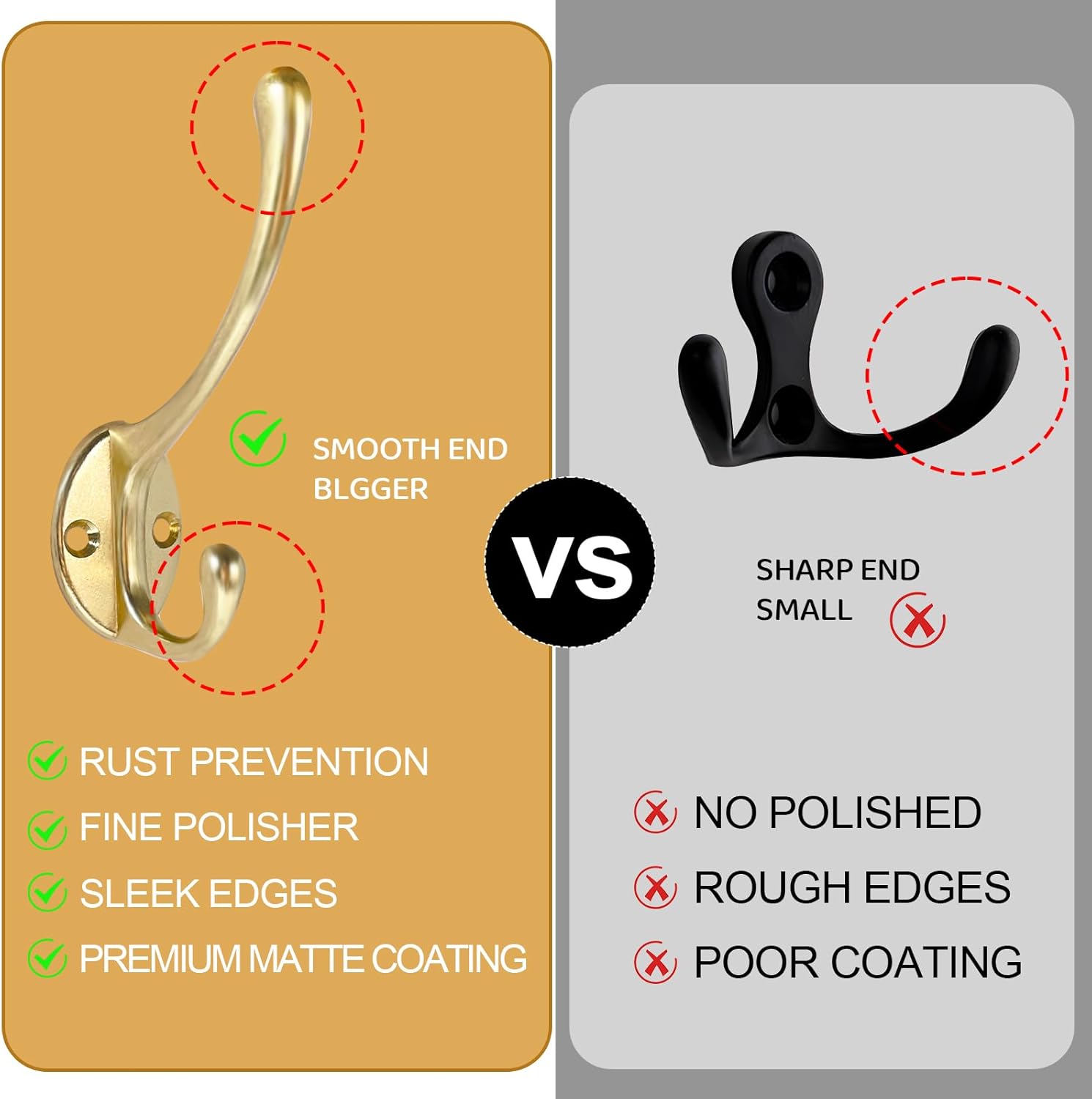 - 【HIGH LOAD-BEARING CAPACITY】 The coat hooks for wall is made of sturdy and durable zinc alloy material, ensuring its stable structure and high high gravity Polished and plated treatment not only enhances the appearance texture of the coat hook, but also strengthens its wear-resistant, corrosion-resistant and rust-resistant properties to ensure its durability.