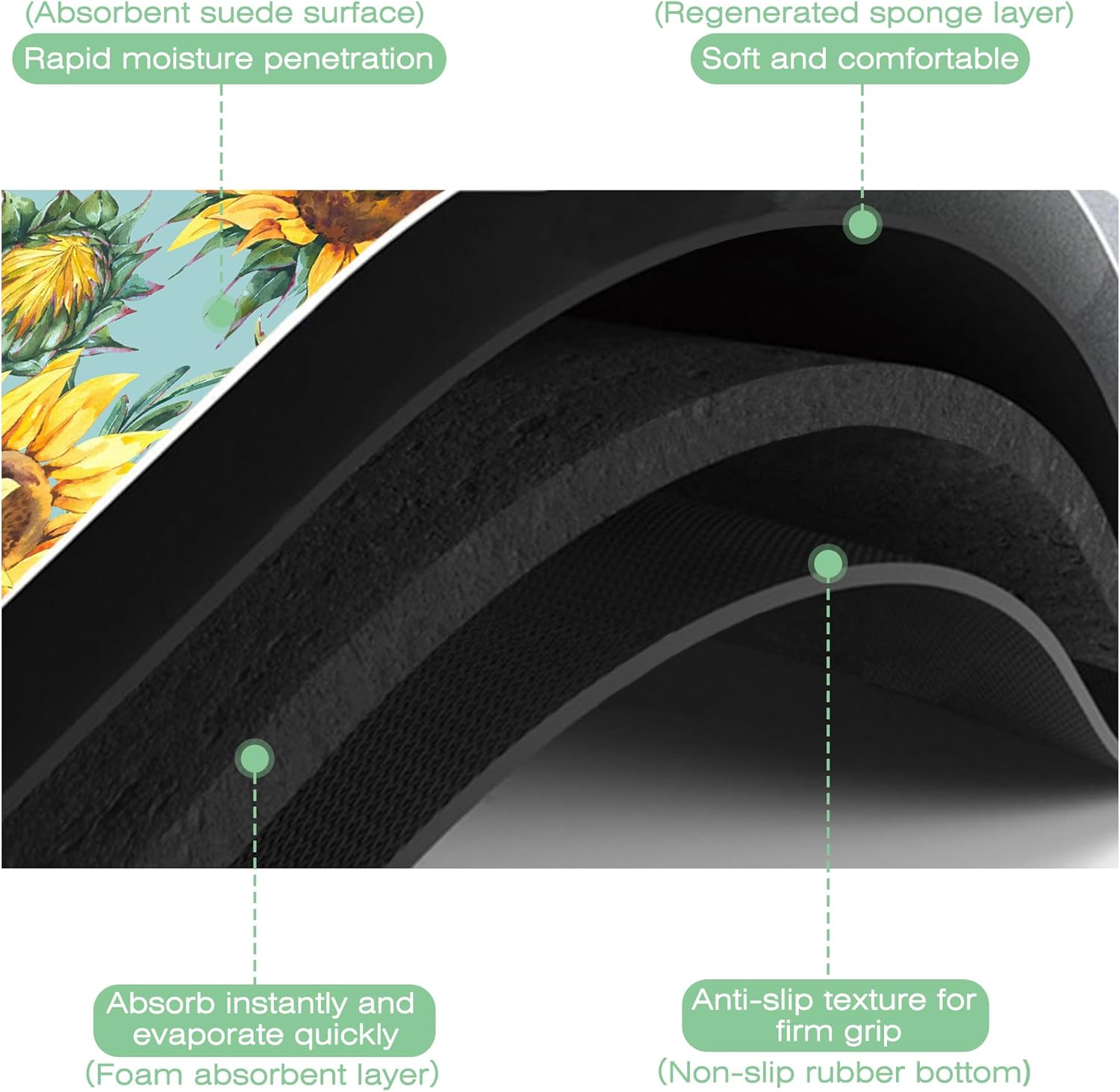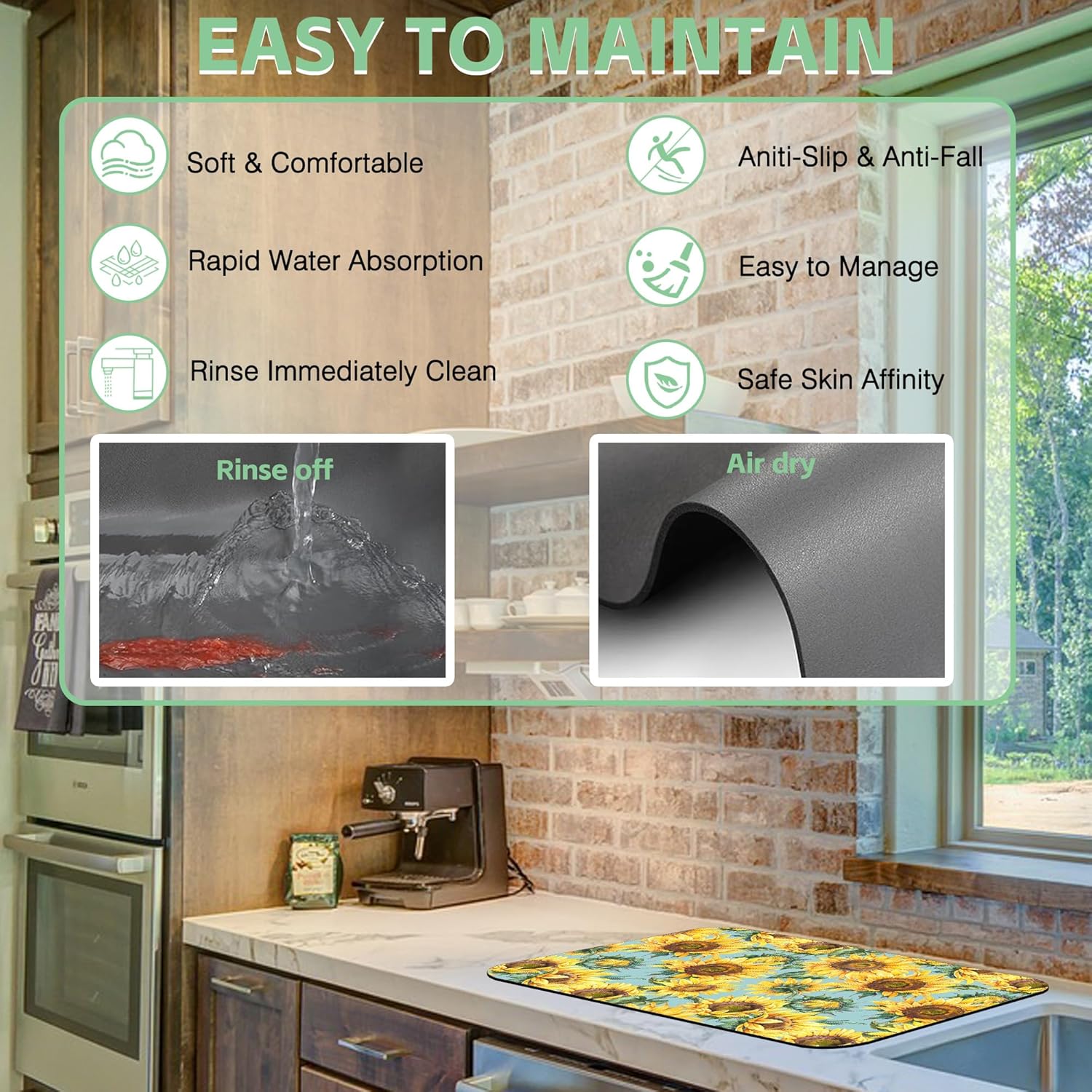 Dish Drying Mat Watercolor Rustic Sunflower Dish Drying Pad,12"X19" Bsorbent Coffee Mat for Sink Dishes or Under Rack Kitchen Counter Accessories Absorbent Hide Stain Rubber Backed Drying Mat