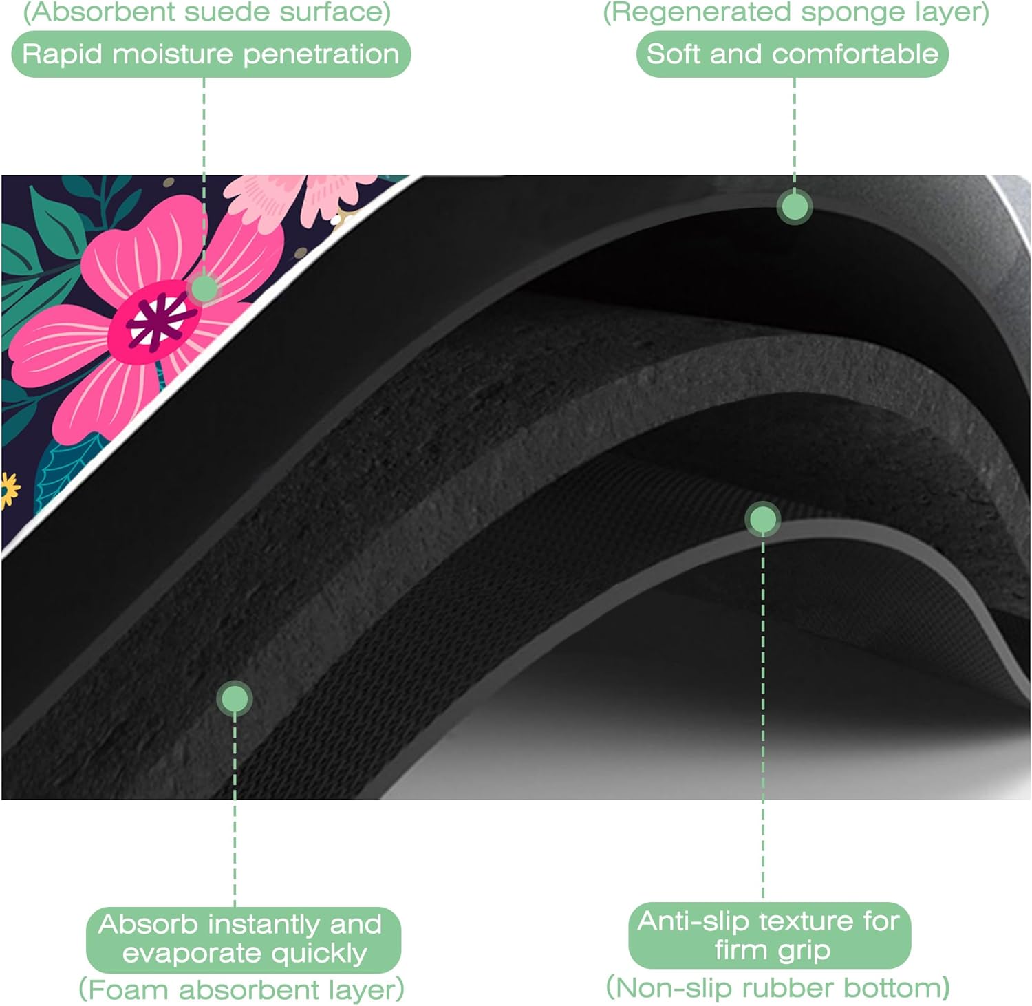 - 【Hide Stains & Easy to Clean】Our dish drying mat, the surface material porosity is up to 85%, which can quickly absorb stains. The dish drying mat can be washed by hand or machine to remove stains, it will not fade after repeated washing, and can be reused many times, due to the high-definition printed suede with excellent color locking effect, please do not use bleach to clean the mat.