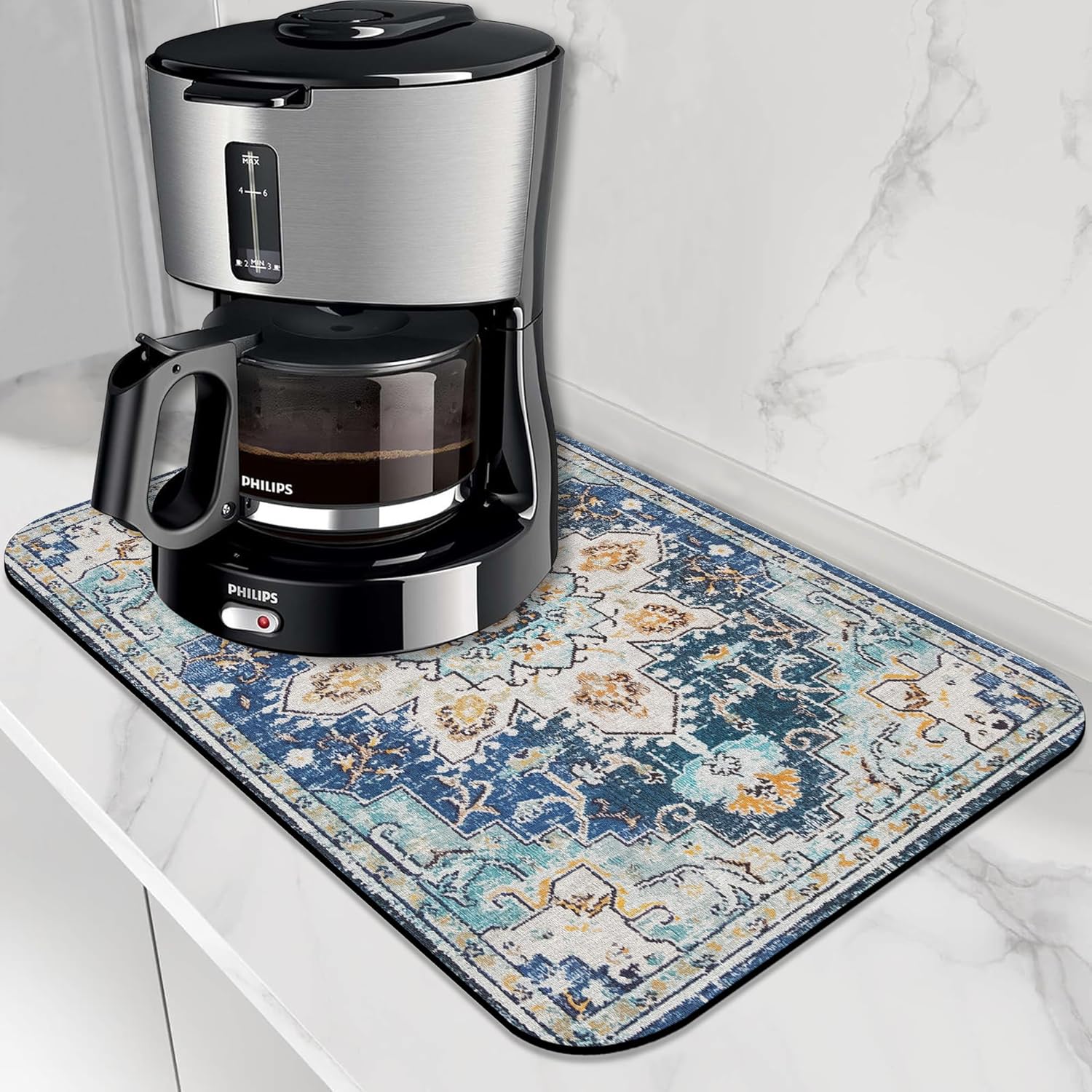 - 【Super Absorbent & Non-slip】The coffee mat is made of absorbent suede and non-slip rubber. The surface is soft, wear-resistant and heat-resistant, and can quickly absorb the coffee and water droplets. The non-slip textured rubber backing can firmly grip the counter, and the coffee machine, coffee pot and kitchen utensils will not slide when placed on it. It is very suitable as a kitchen or coffee bar accessory.