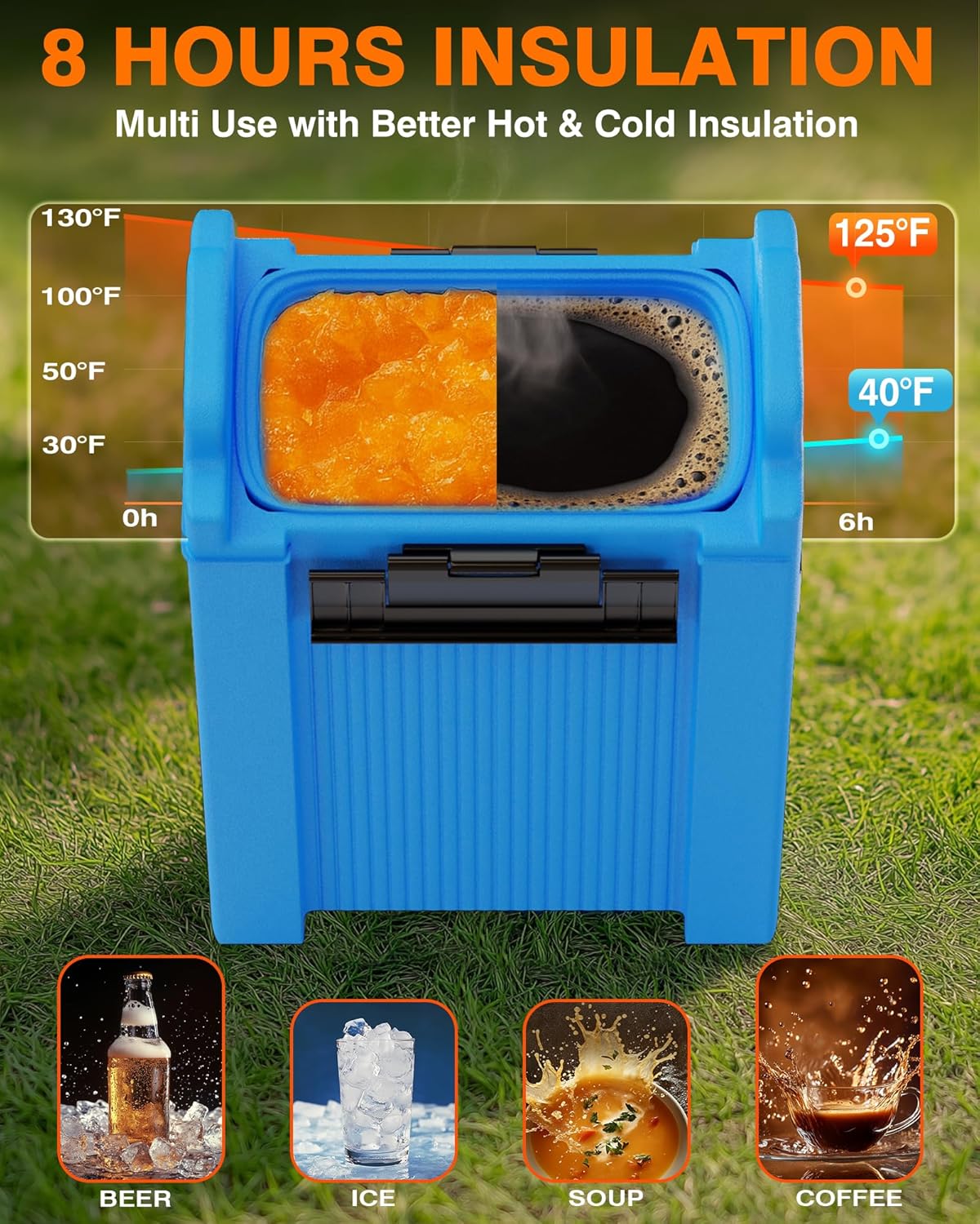 - INSULATION EXPERT:Enjoy exceptional insulation performance with our insulated beverage dispenser. In an environment with a temperature of 20°C±5°C, 100°C hot water only decreases by 2°C per hour. Additionally, when a 1:1 mixture of ice and water at just 4 degrees is placed in the bucket, ice remains virtually unmelted for the first 6 hours. The one-piece seamless double-wall structure ensures a lasting ideal temperature for your beverages, whether hot or cold.