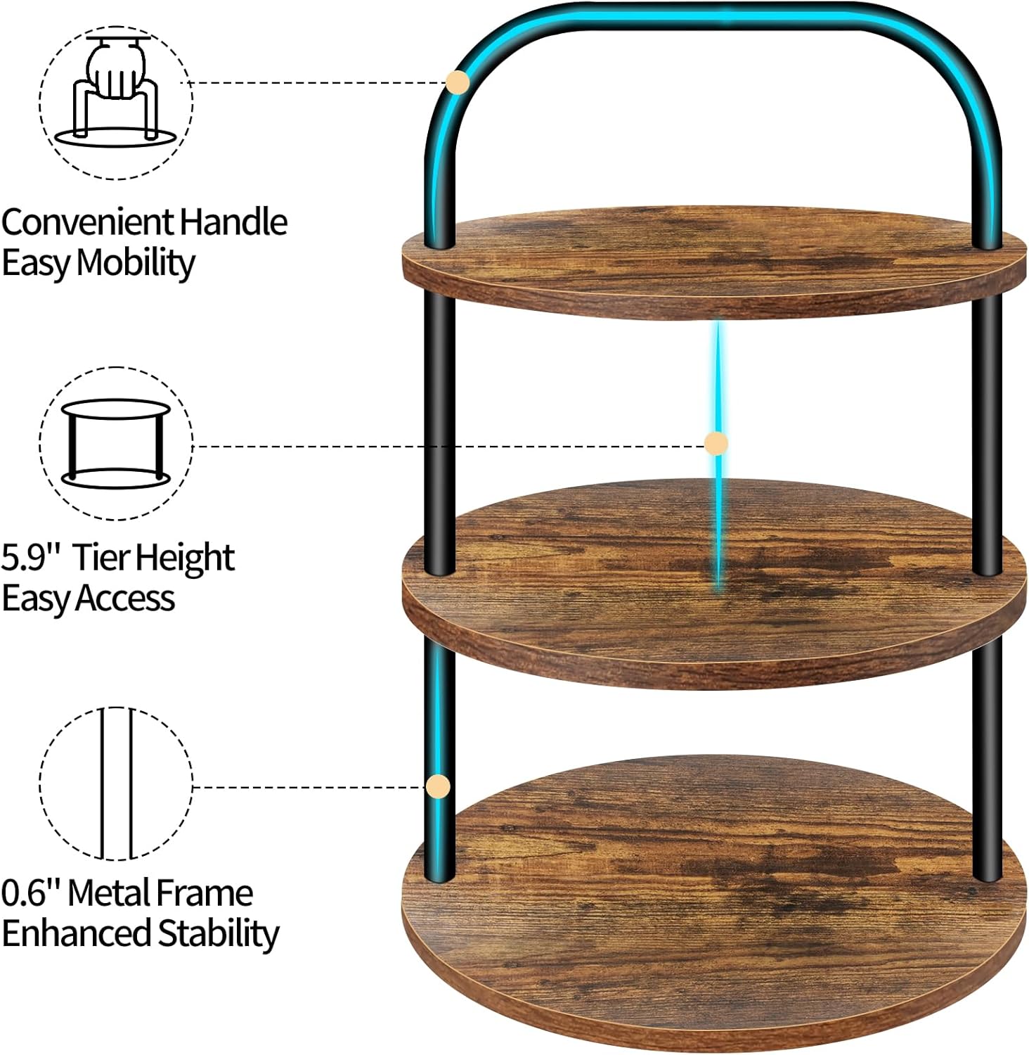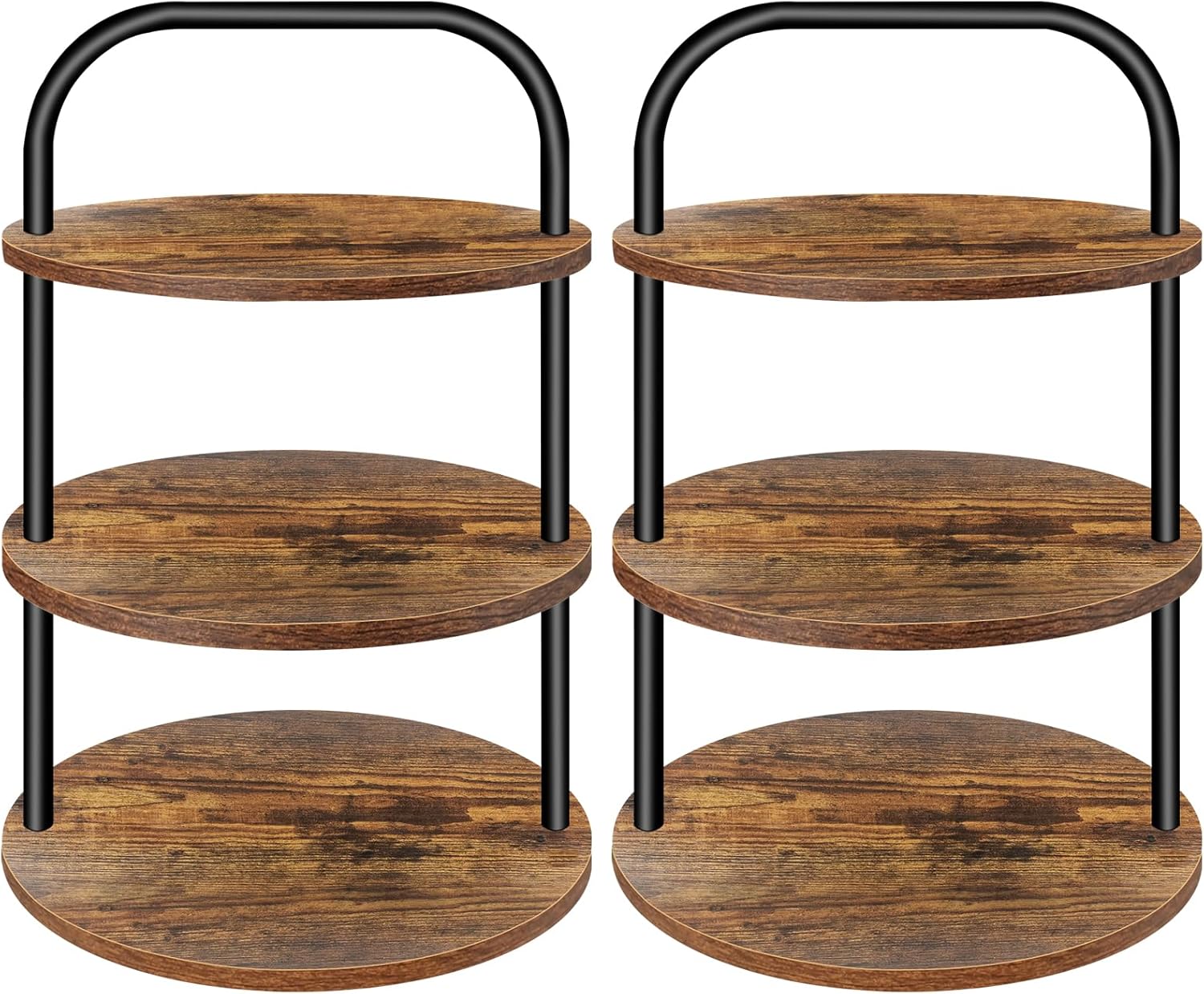 - Robust and Stable Construction: The tiered tray stand is crafted from thick 0.5" MDF boards supported by sturdy 0.6" diameter metal stands. The non-slip bottom pads keep the stands securely in place, preventing unwanted movement and providing a stable platform for cupcakes.