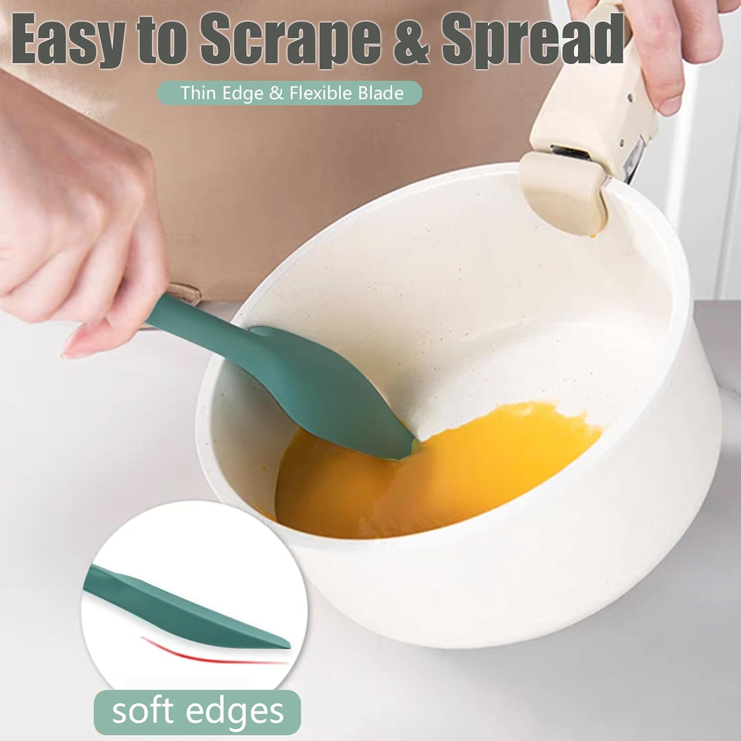 Silicone Spatula, 4-Pack Silicone Set Heat Resistant for Non Stick,Food Grade Cookware with Stainless Steel for Mixing,Cooking,Baking,Flipping,Spreading,Lifting,Serving,BPA Free,Dishwasher Safe(Green)