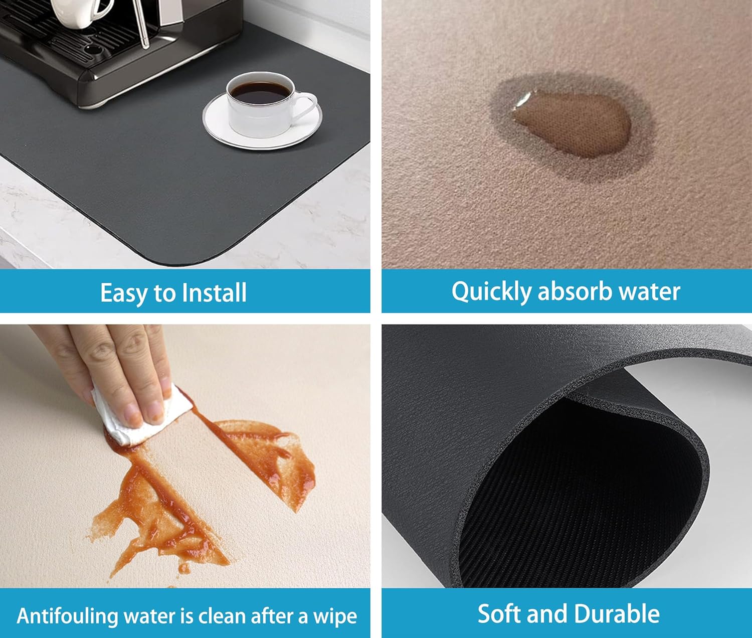- SUPER ABSORBENT: Super absorbent soft diatomite can suck up water splashes and duping coffee instantly without messing up your countertop