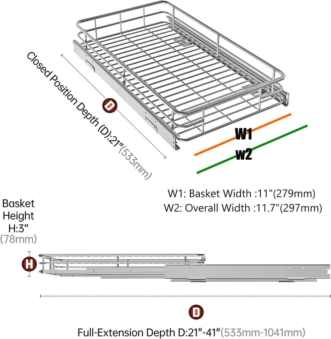 - Available in Multiple Sizes: We offer pull-out baskets in multiple sizes, Including widths of 11, 14, 17, 20, and 22 inches, Designed to fit most standard cabinets and accommodate your various needs