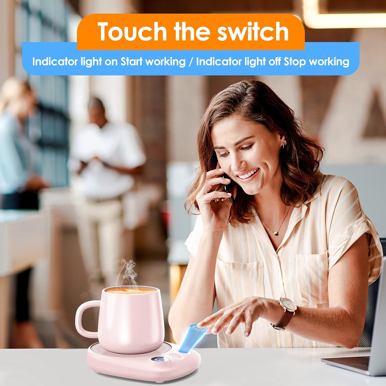 Coffee Mug Warmer - Fastest Heating & Highest Temperature, Coffee Cup Warmer for Desk Auto Shut Off, 4 Temp Settings & 1-12H Timer, Smart Electric Beverage Warmer for Coffee, Tea (Pink)