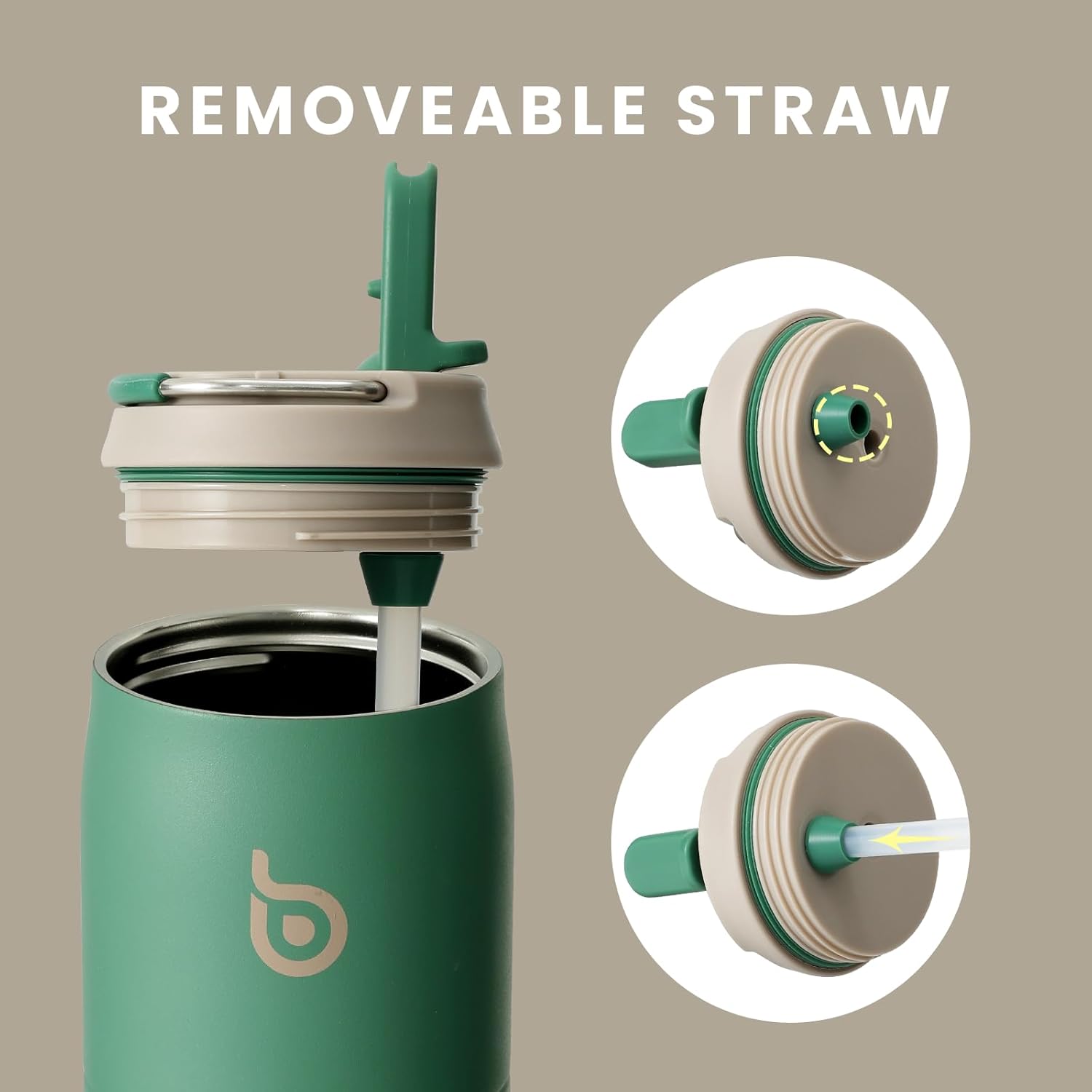 - LID with Handle: 32 oz insulated water bottles for men with straw lid, Leak-proof lid with portable handle, easy to carry to anywhere you want. No need to change your lid frequently with the Multi-functional lid