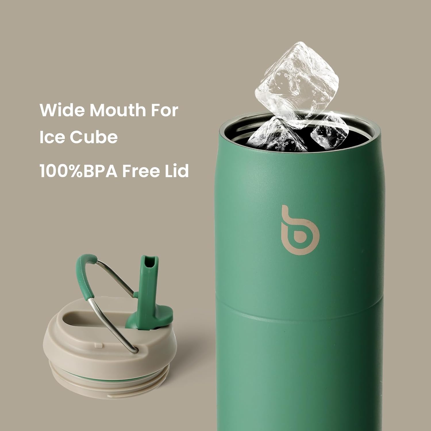 - HIGH QUALITY MATERIALS: Premium 18/8 food grade stainless steel water bottle with leak-proof and sweat-proof lids, All materials in contact with beverages are recyclable, great for your health